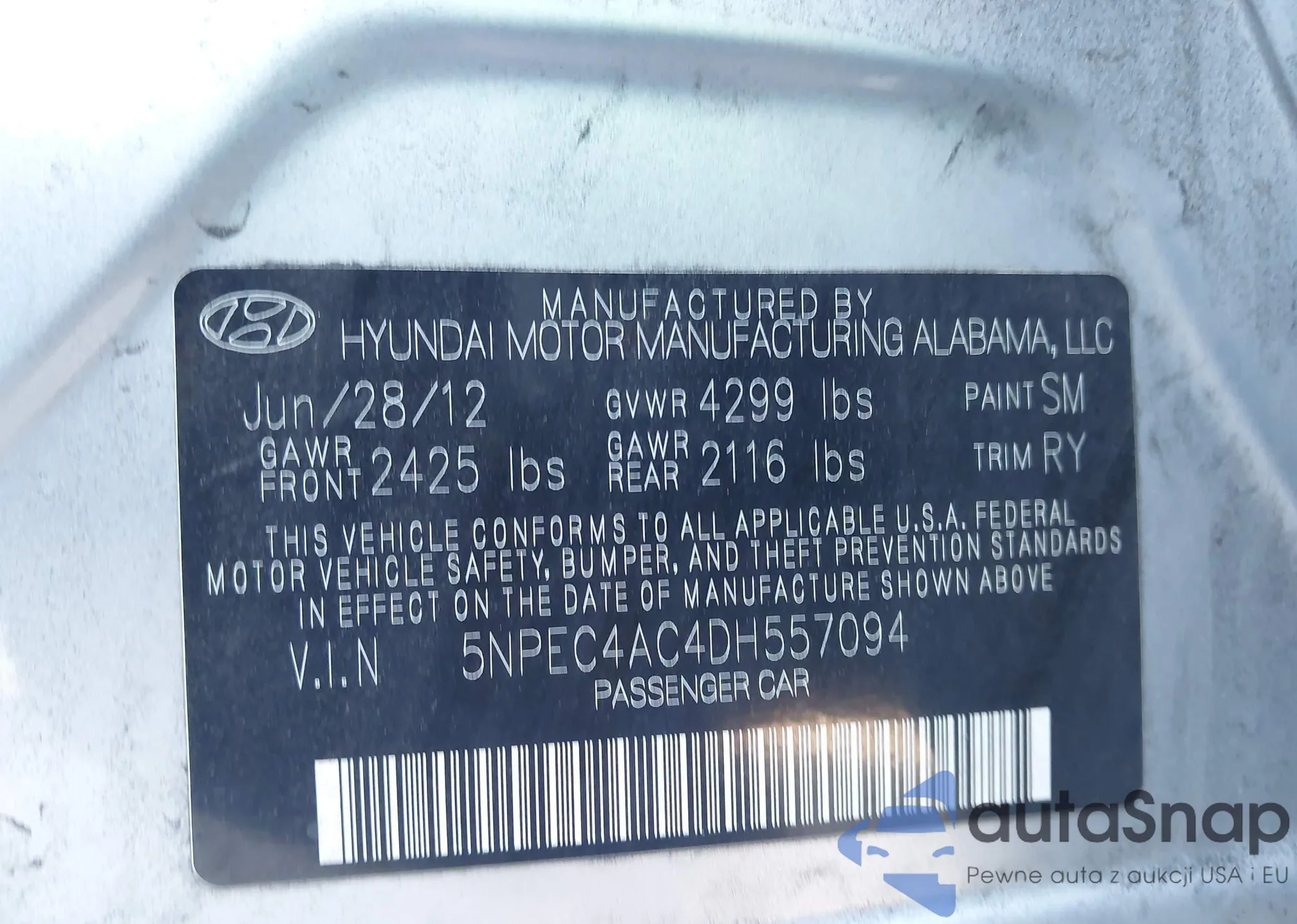 • VIN 5NPEC4AC4DH557094