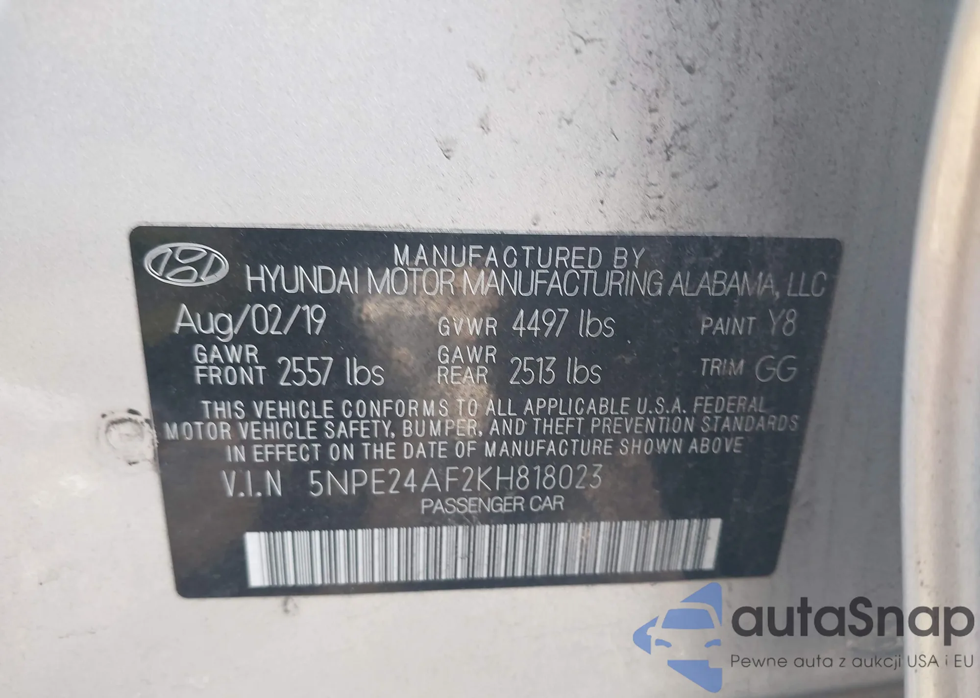• VIN 5NPE24AF2KH818023