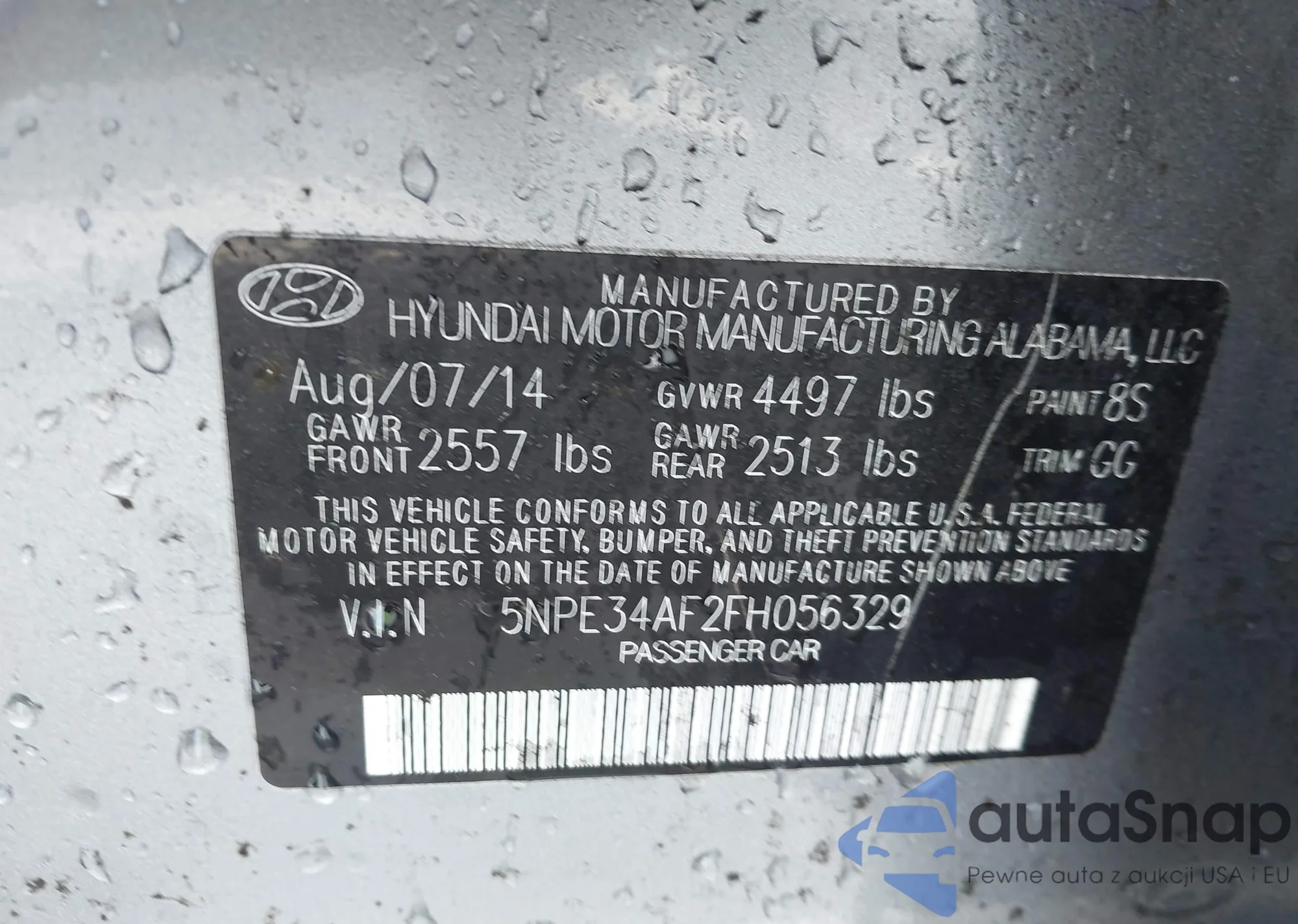 • VIN 5NPE34AF2FH056329