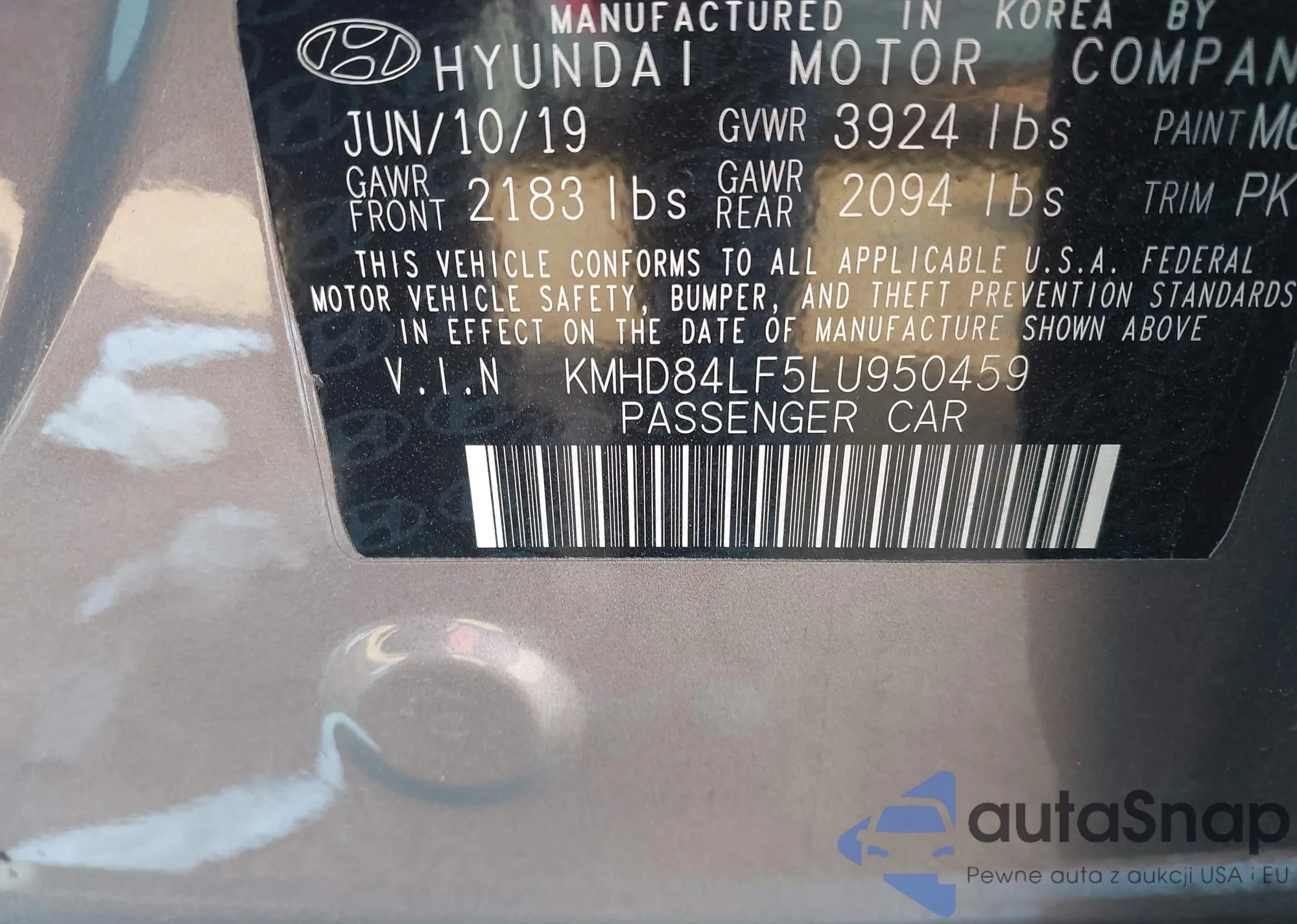 LOT: 43889515 VIN: KMHD84LF5LU950459
