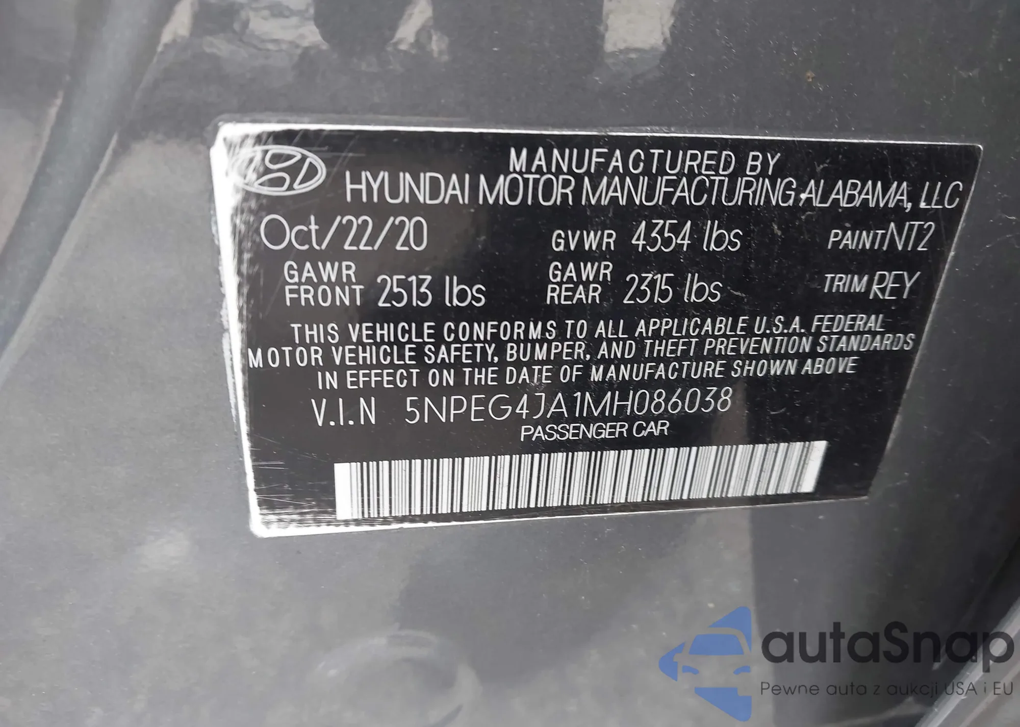 LOT: 44275569 VIN: 5NPEG4JA1MH086038