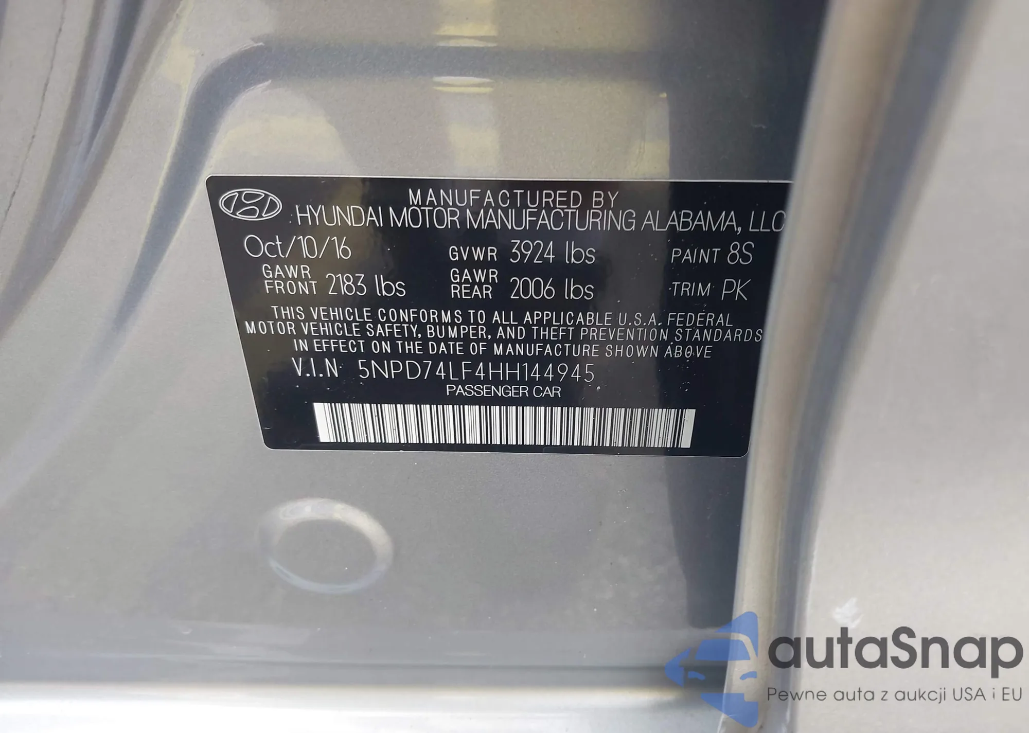 • VIN 5NPD74LF4HH144945