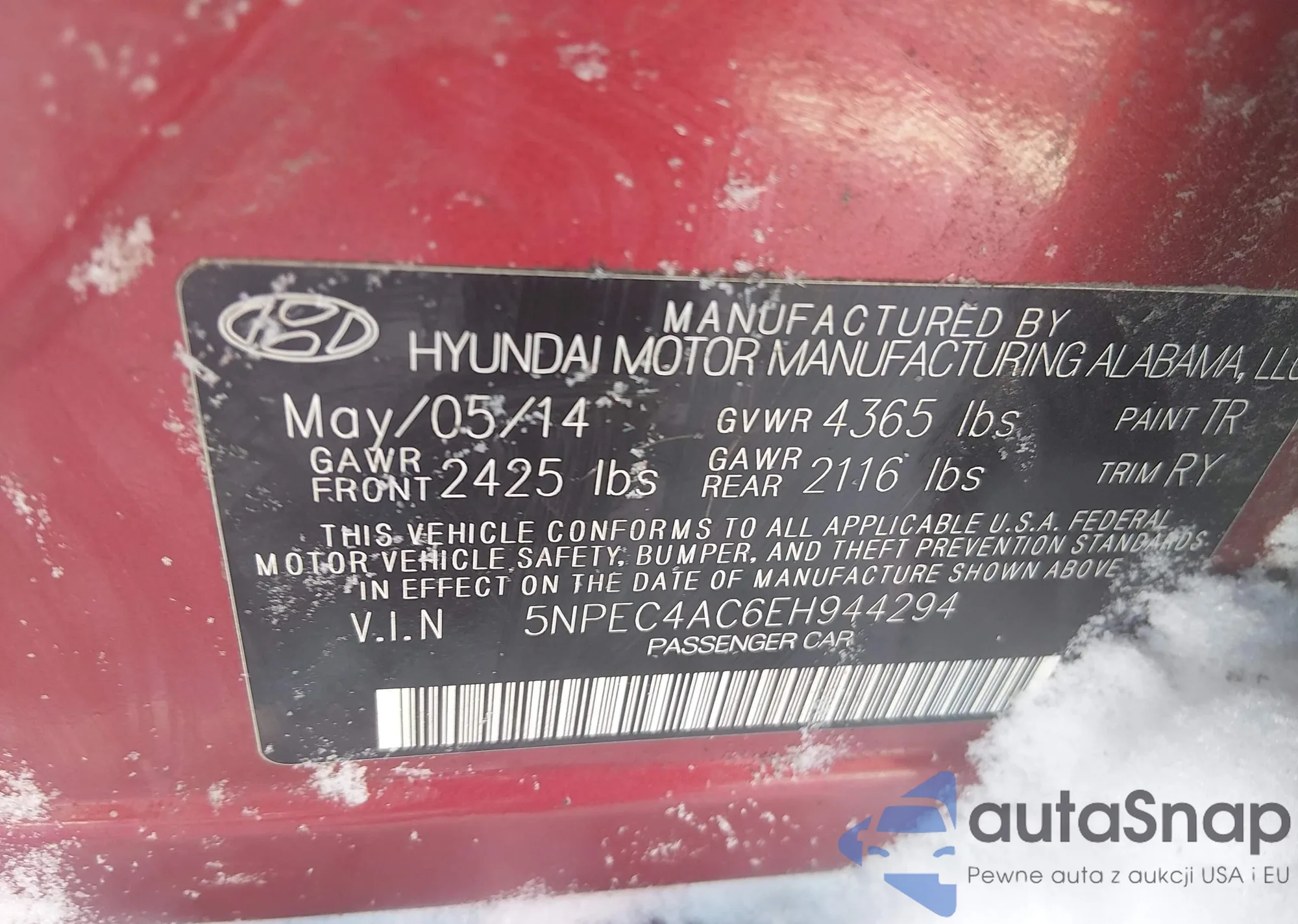 • VIN 5NPEC4AC6EH944294