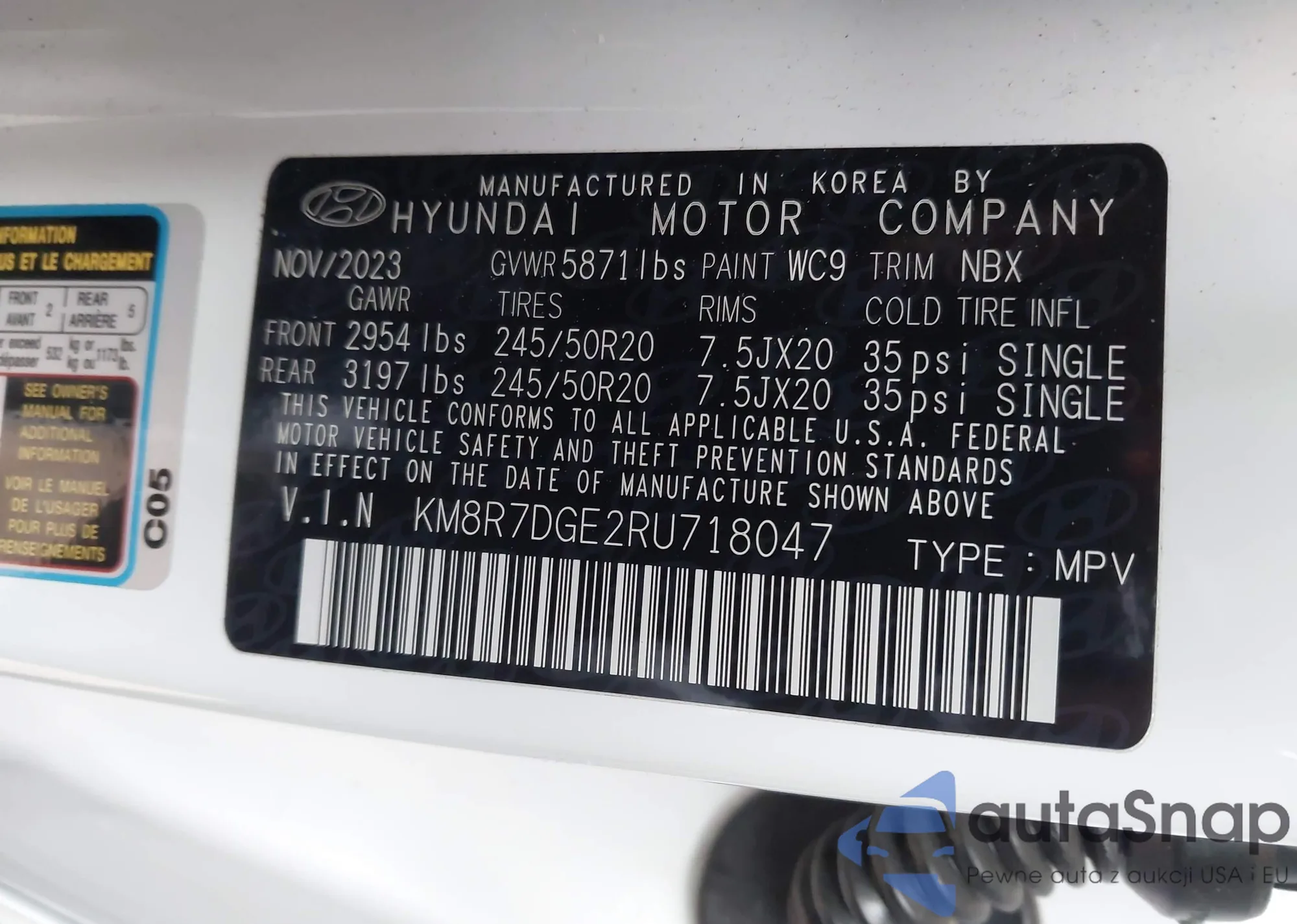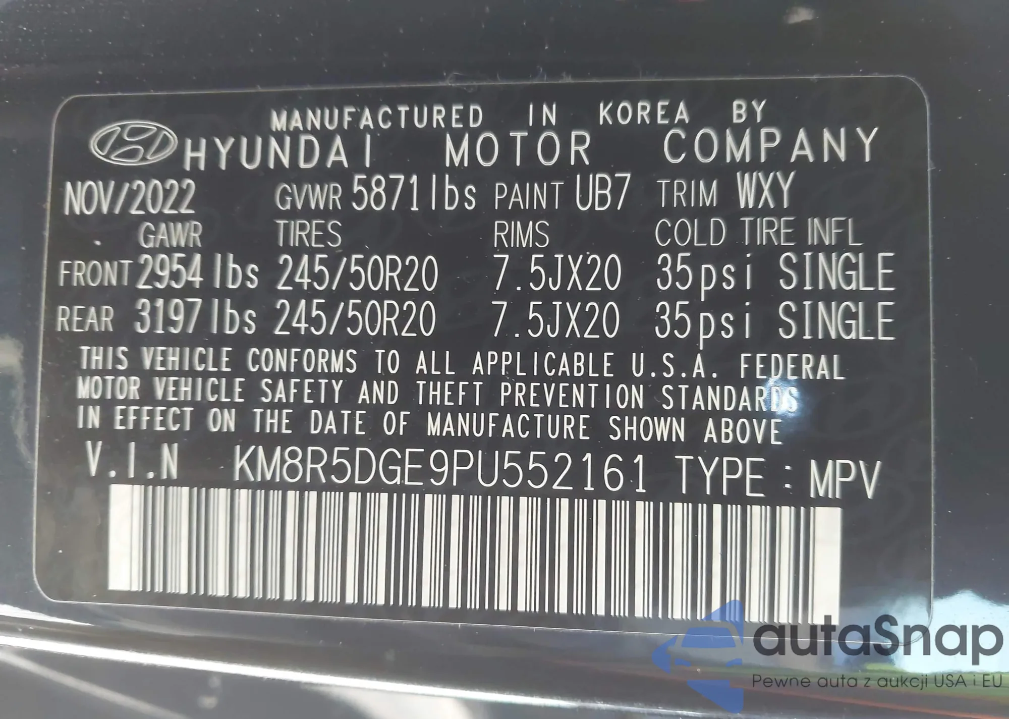 • VIN KM8R5DGE9PU552161