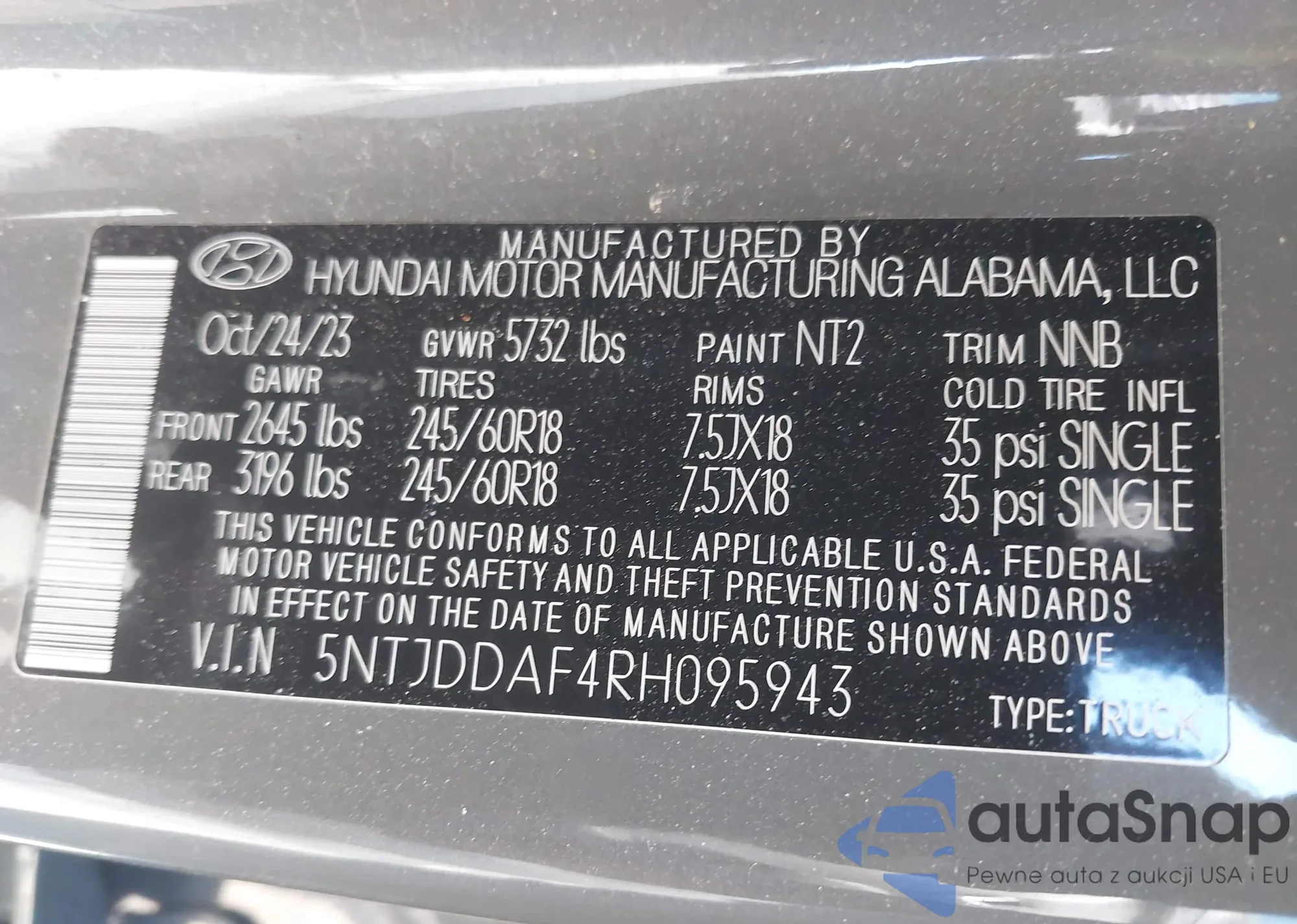 • VIN 5NTJDDAF4RH095943
