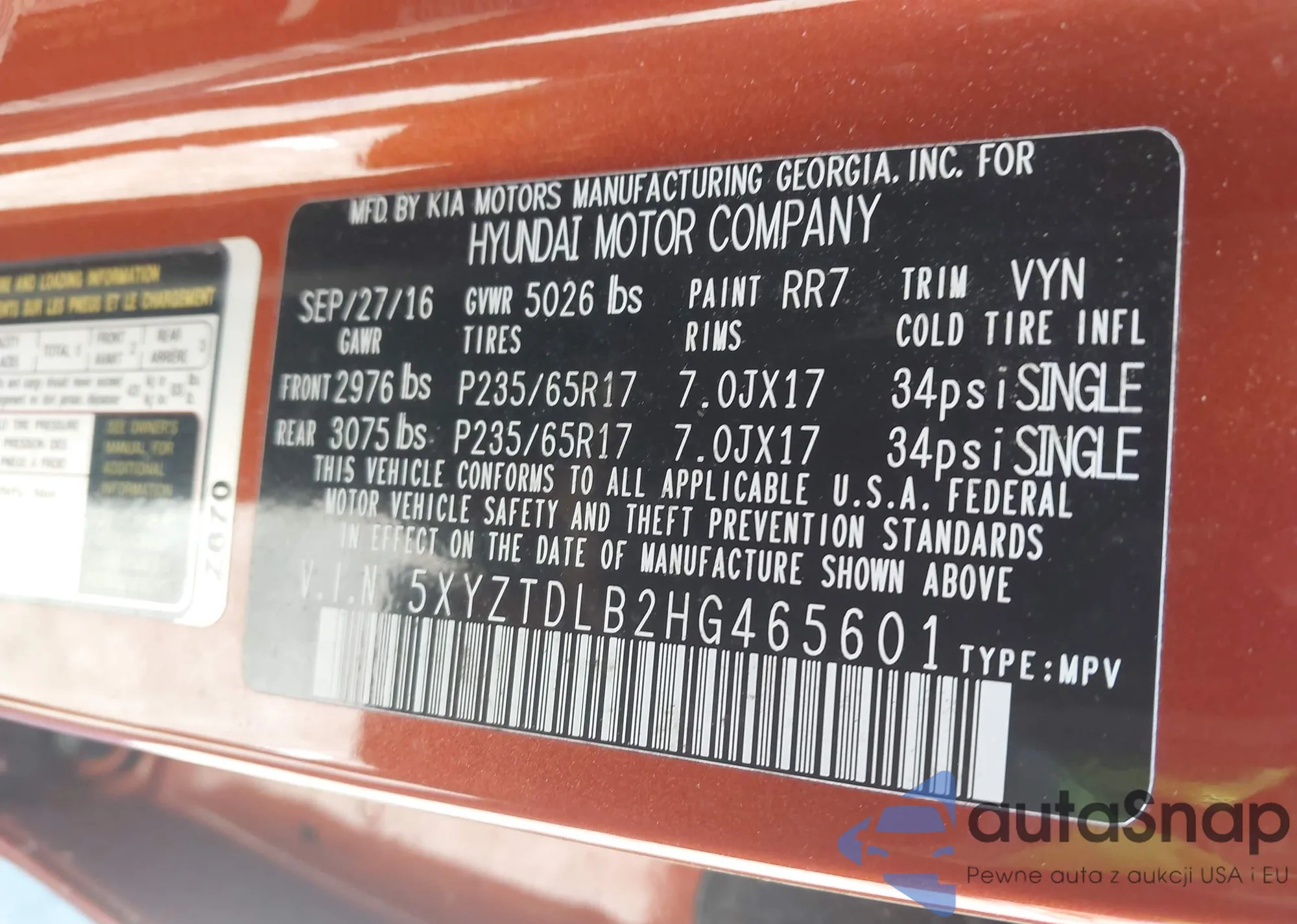 • VIN 5XYZTDLB2HG465601