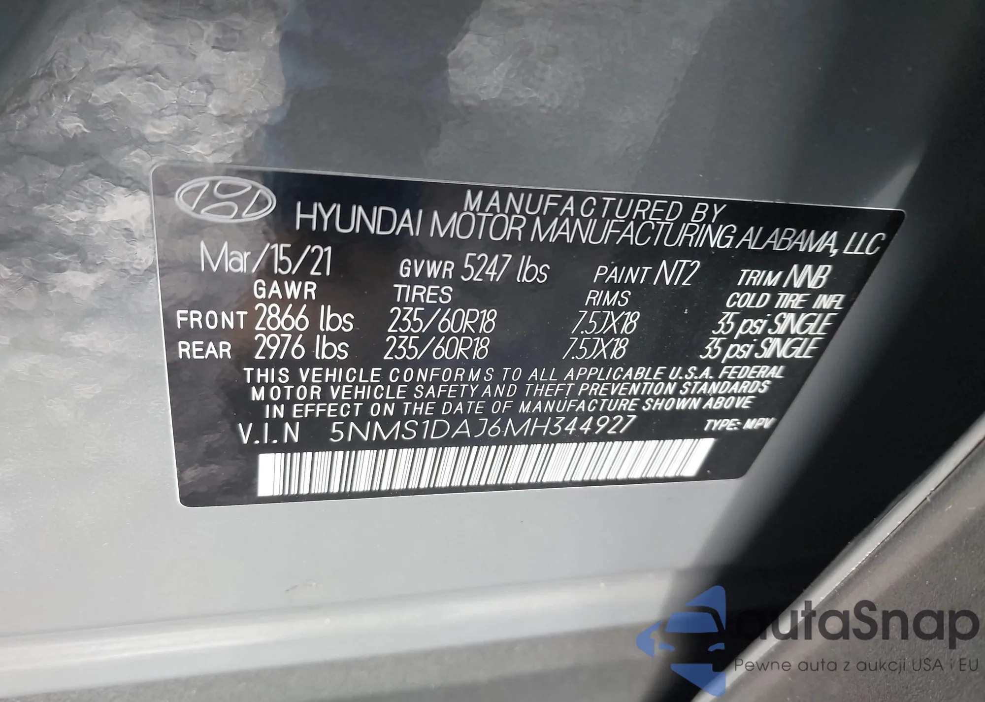 • VIN 5NMS1DAJ6MH344927