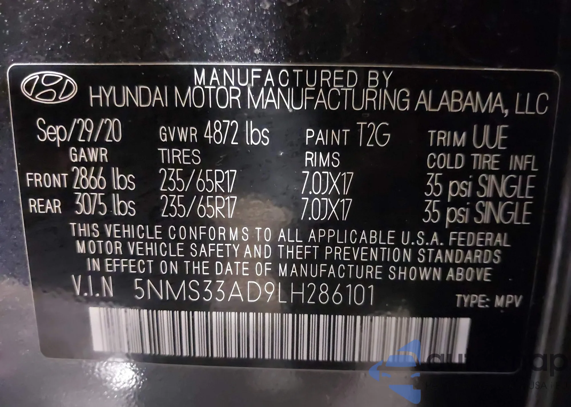 • VIN 5NMS33AD9LH286101