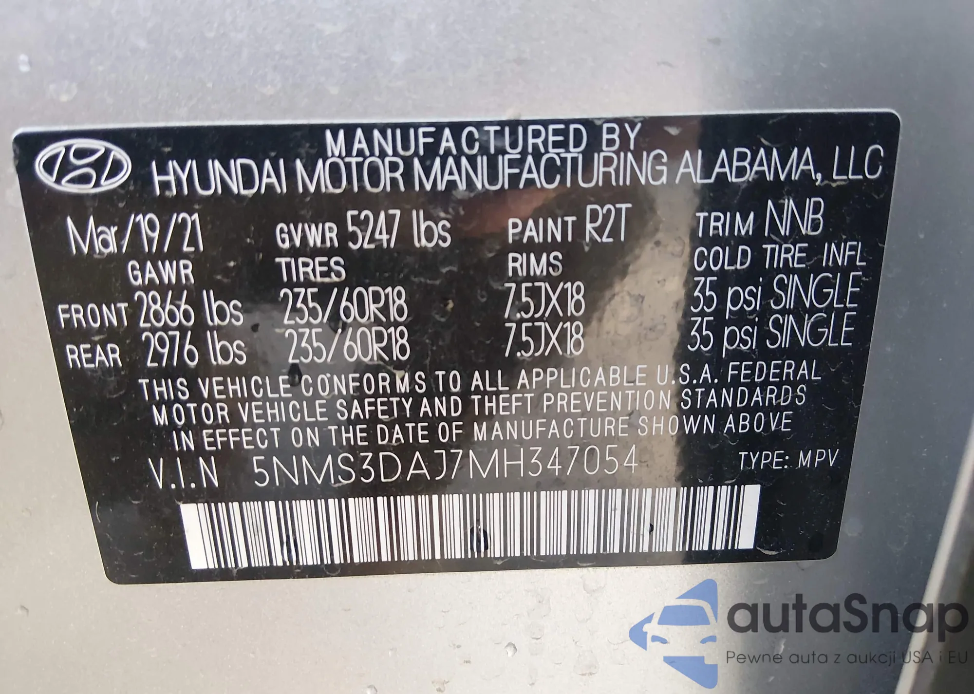 • VIN 5NMS3DAJ7MH347054