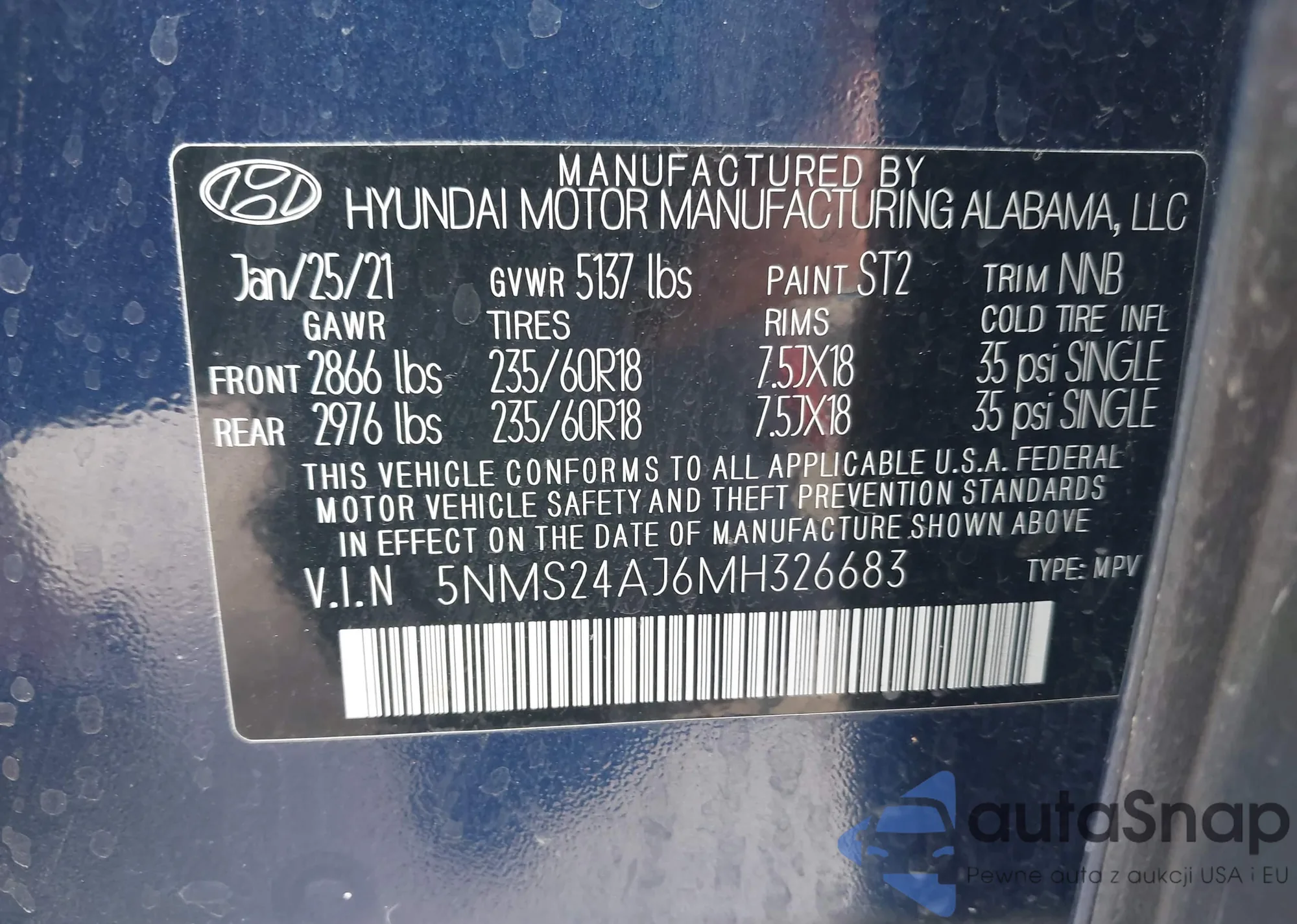 • VIN 5NMS24AJ6MH326683