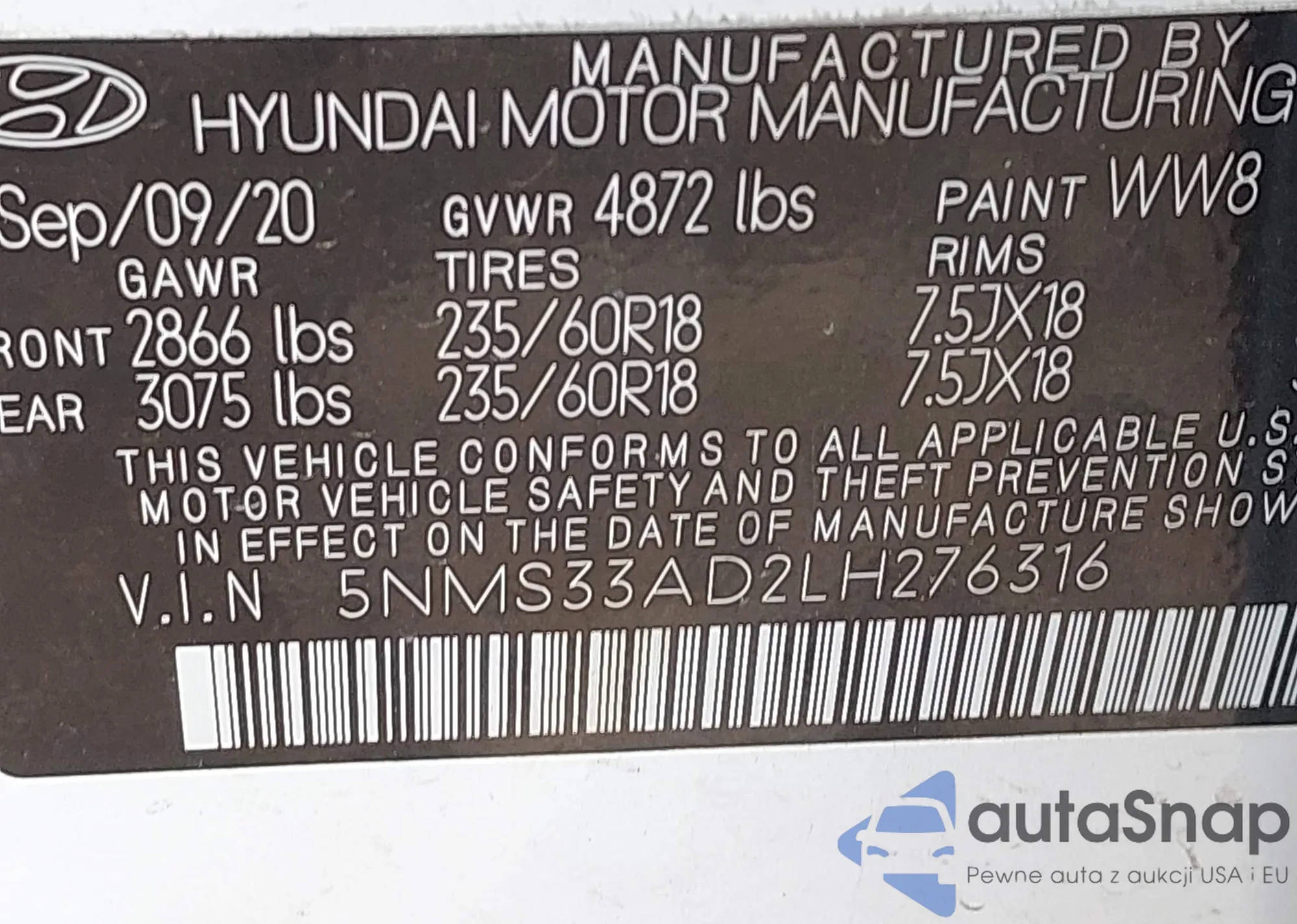 • VIN 5NMS33AD2LH276316
