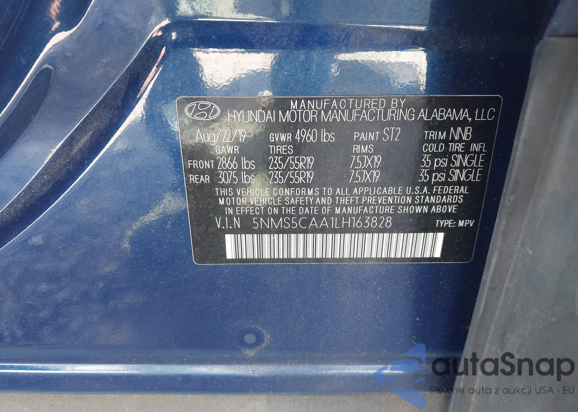 • VIN 5NMS5CAA1LH163828
