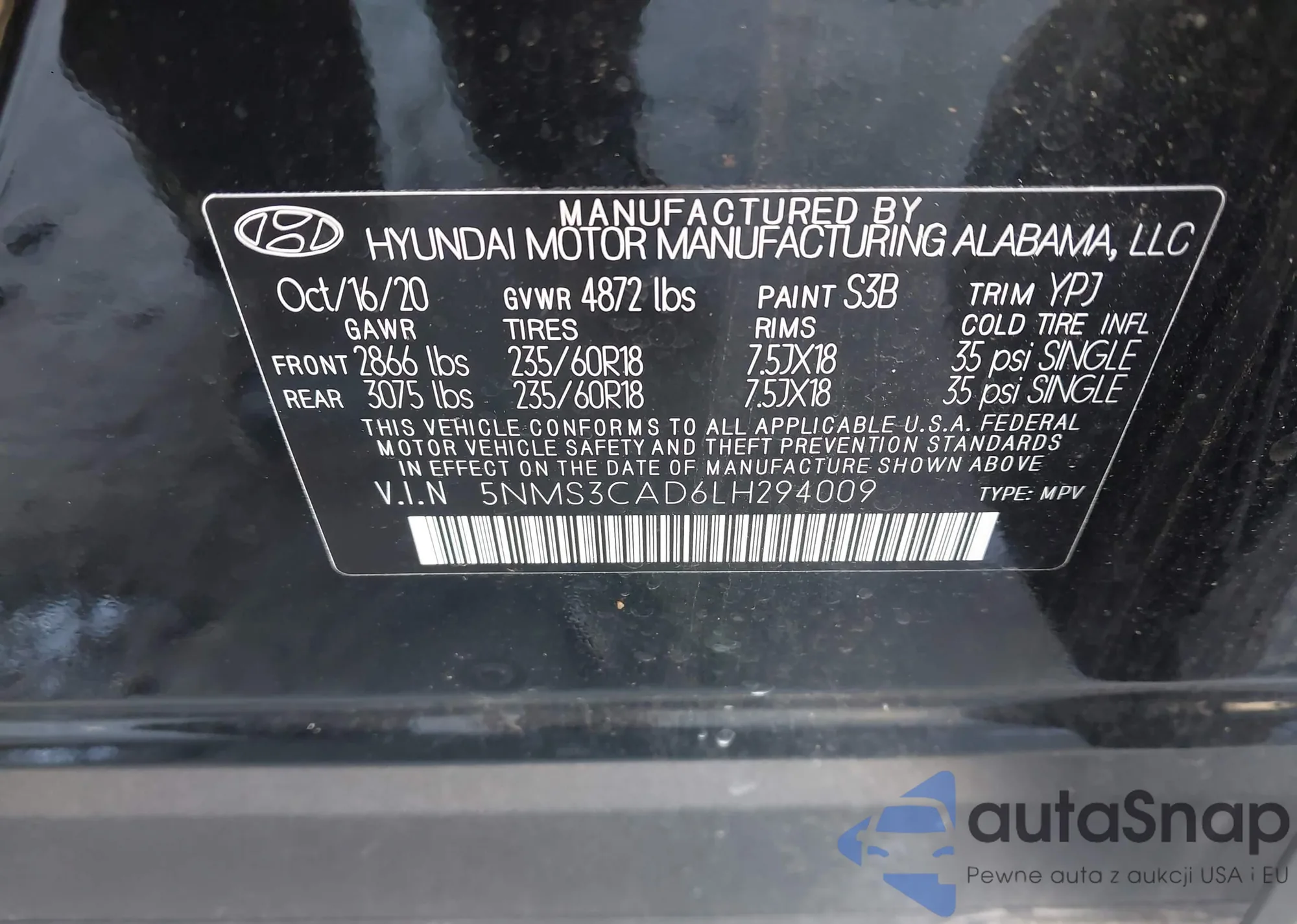 • VIN 5NMS3CAD6LH294009