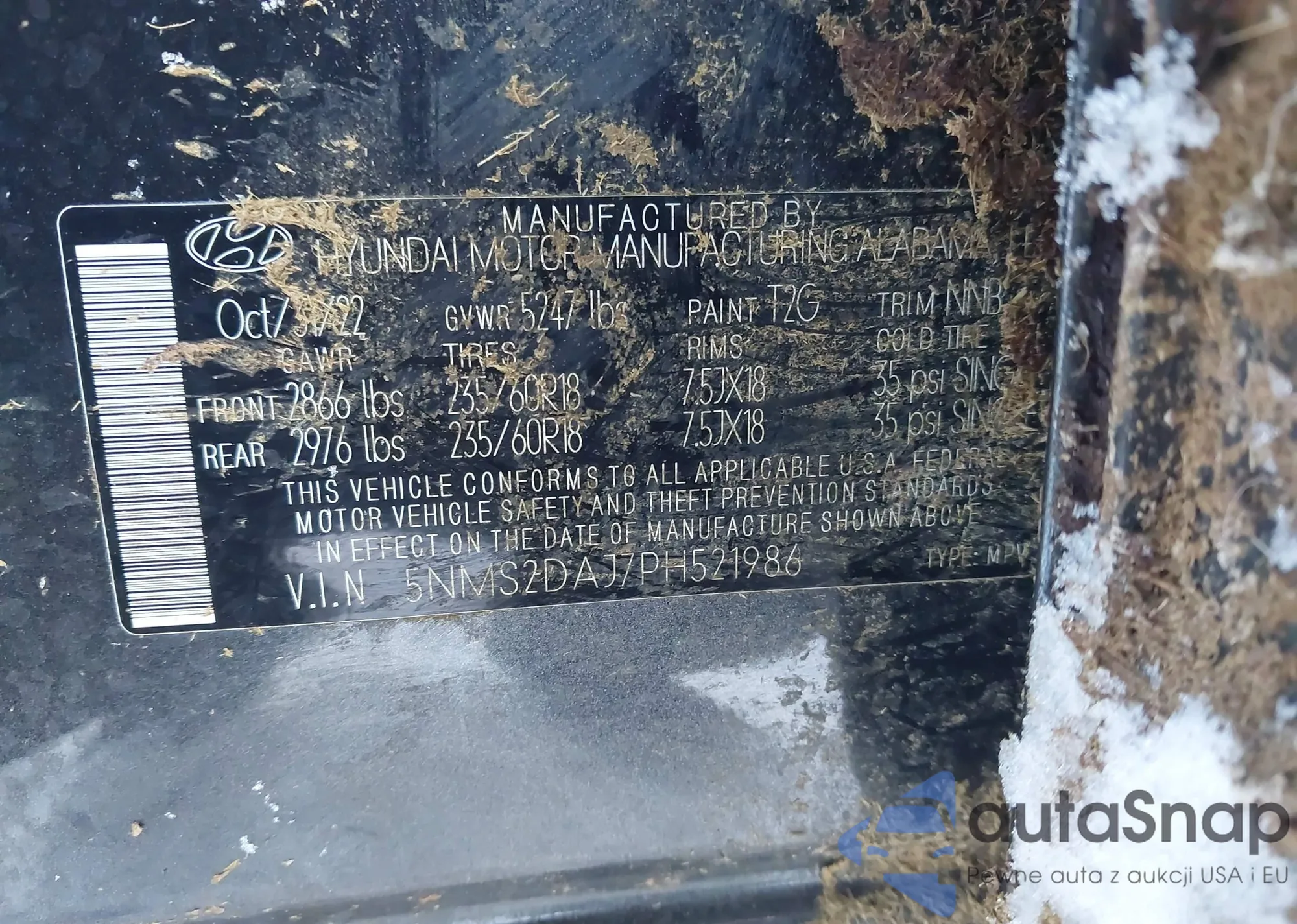 • VIN 5NMS2DAJ7PH521986