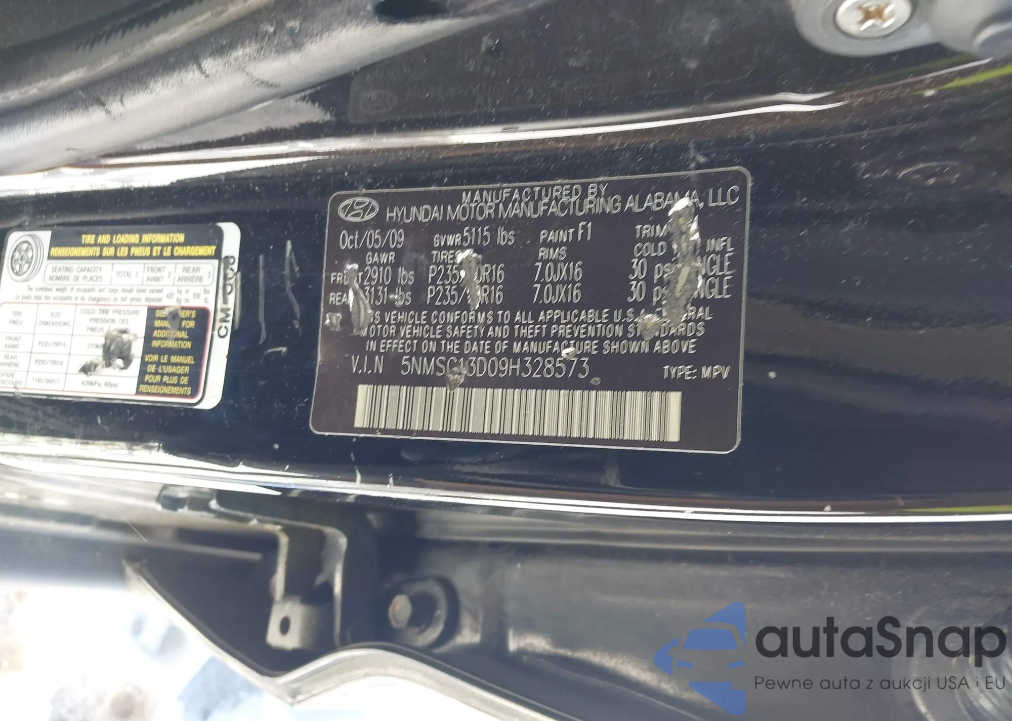 LOT: 43919218 VIN: 5NMSG13D09H328573