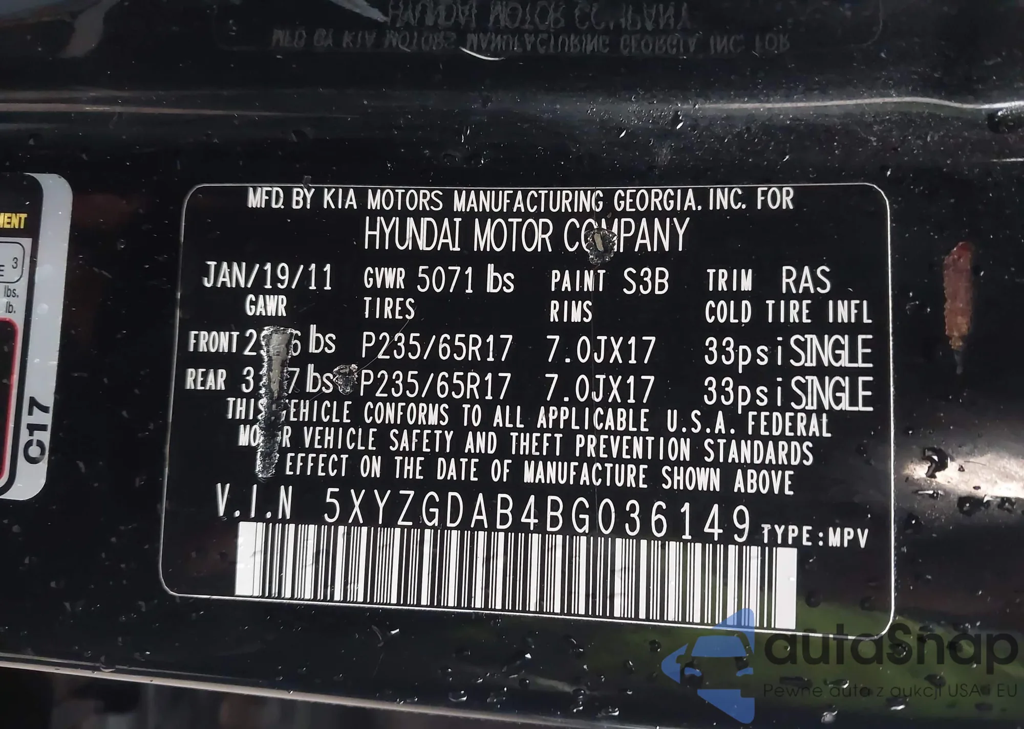 • VIN 5XYZGDAB4BG036149