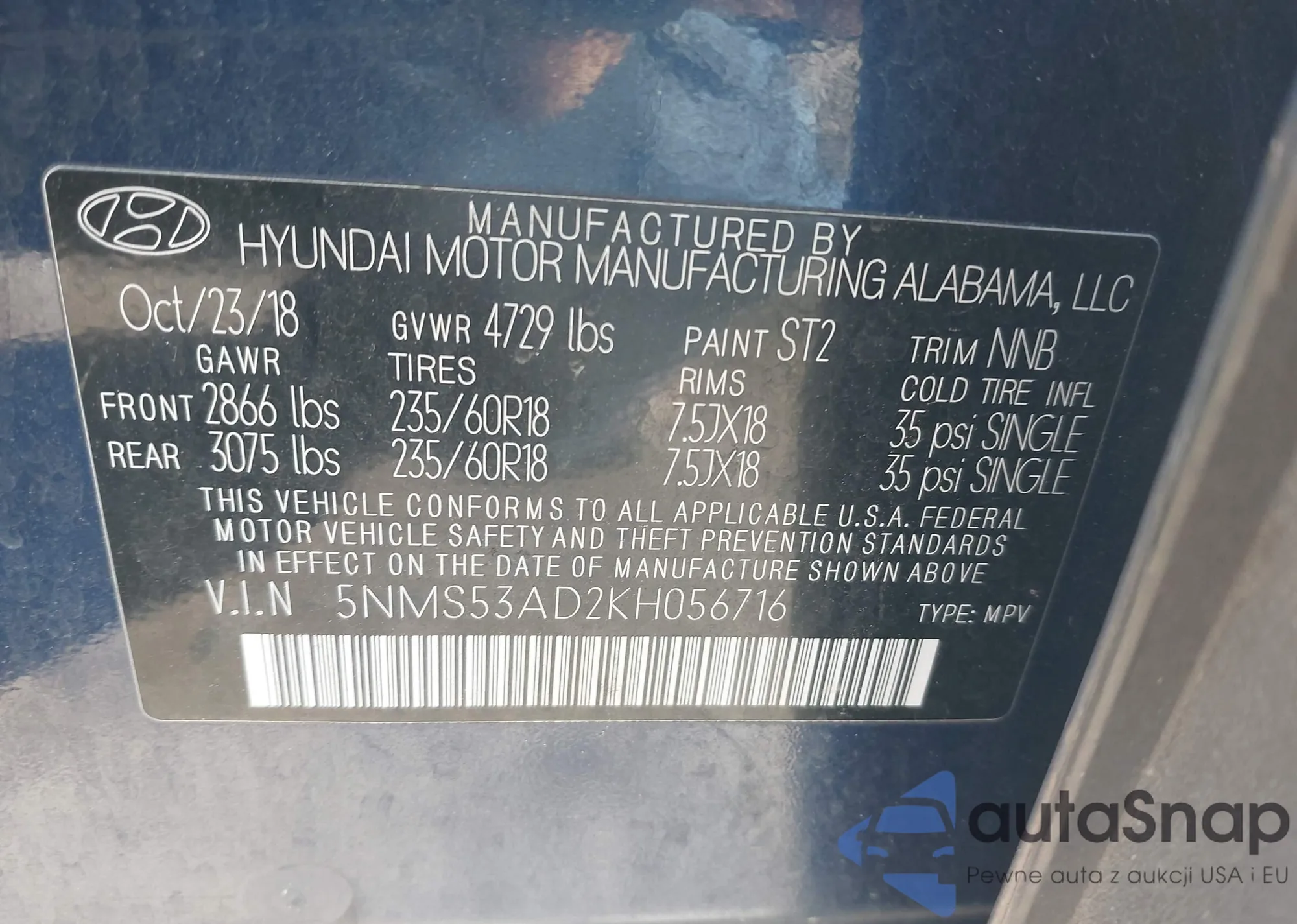• VIN 5NMS53AD2KH056716
