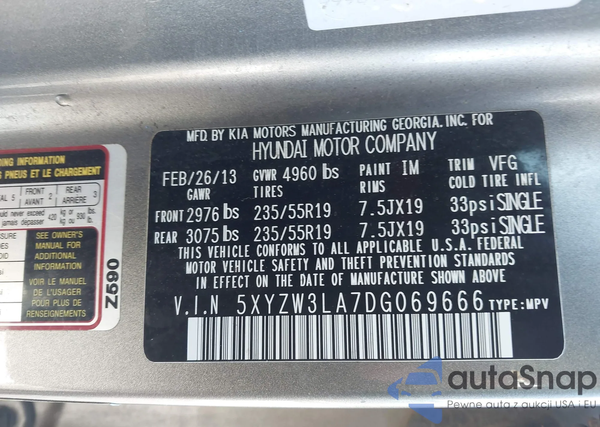• VIN 5XYZW3LA7DG069666