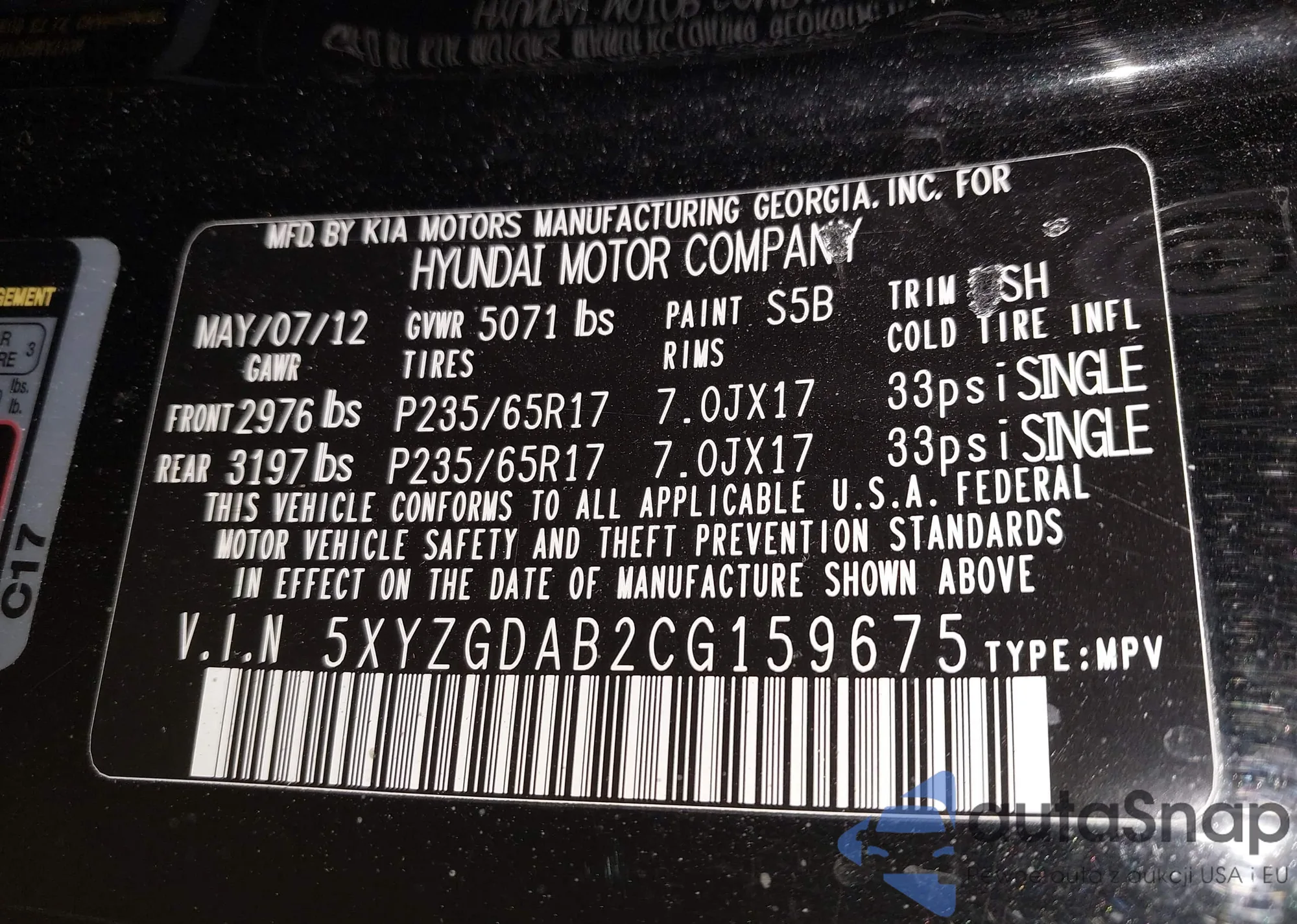 • VIN 5XYZGDAB2CG159675