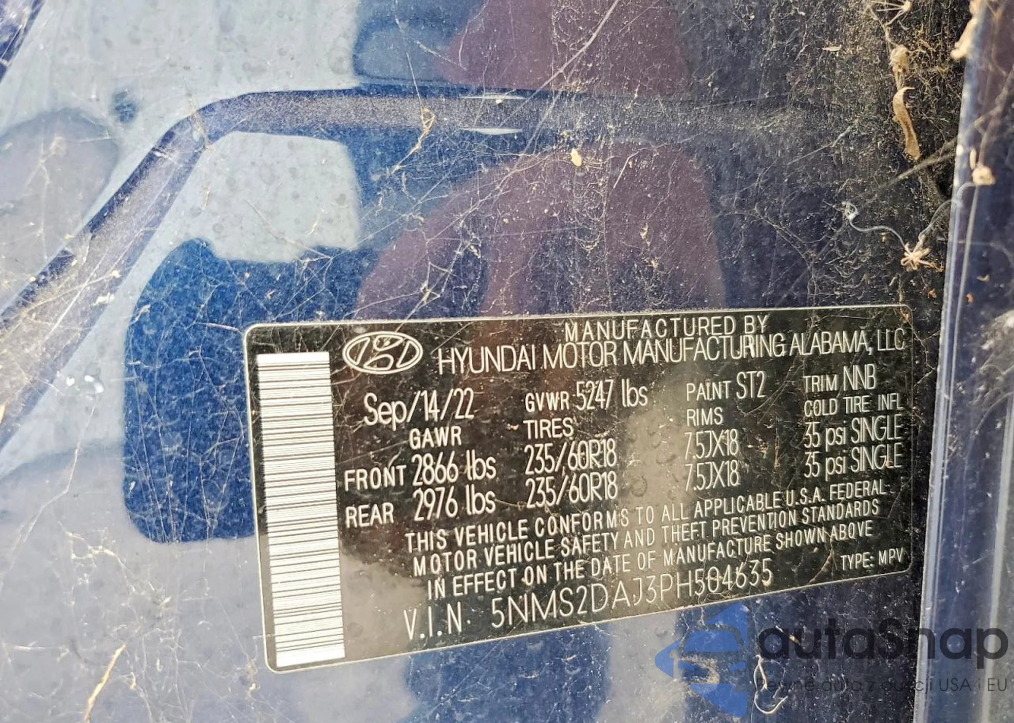 • VIN 5NMS2DAJ3PH504635