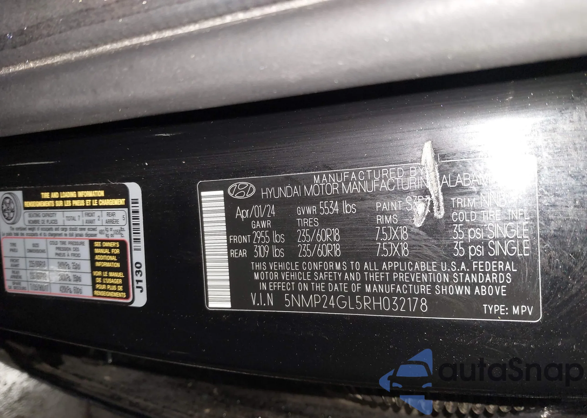 • VIN 5NMP24GL5RH032178