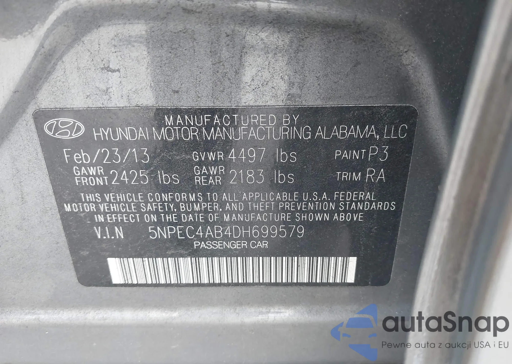• VIN 5NPEC4AB4DH699579