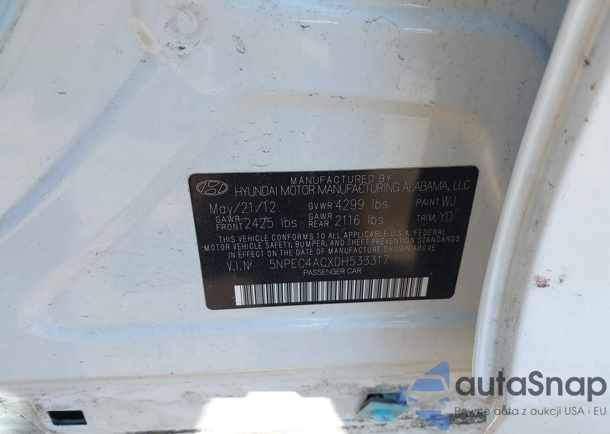 LOT: 43176295 VIN: 5NPEB4AC2DH743185