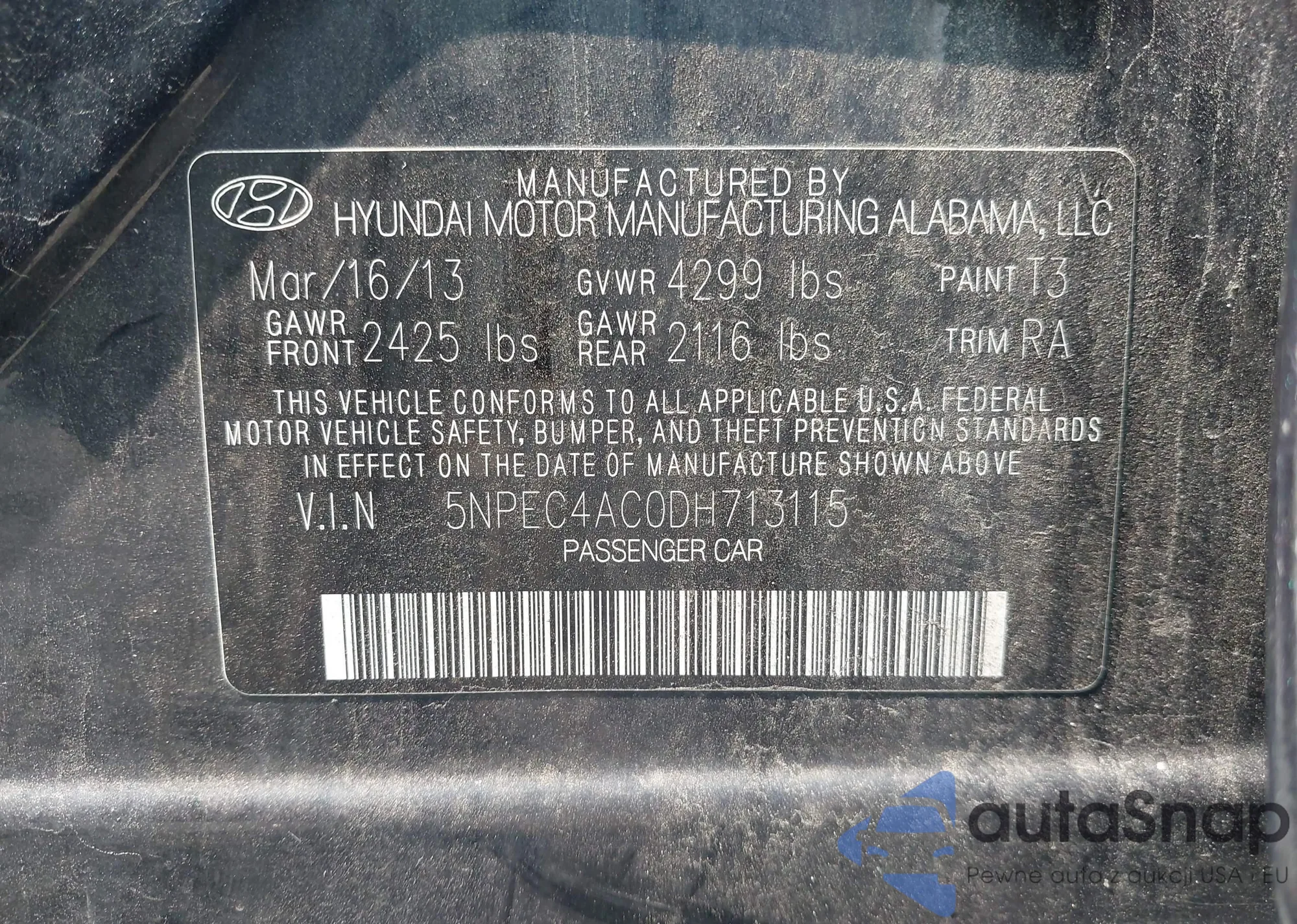 • VIN 5NPEC4AC0DH713115