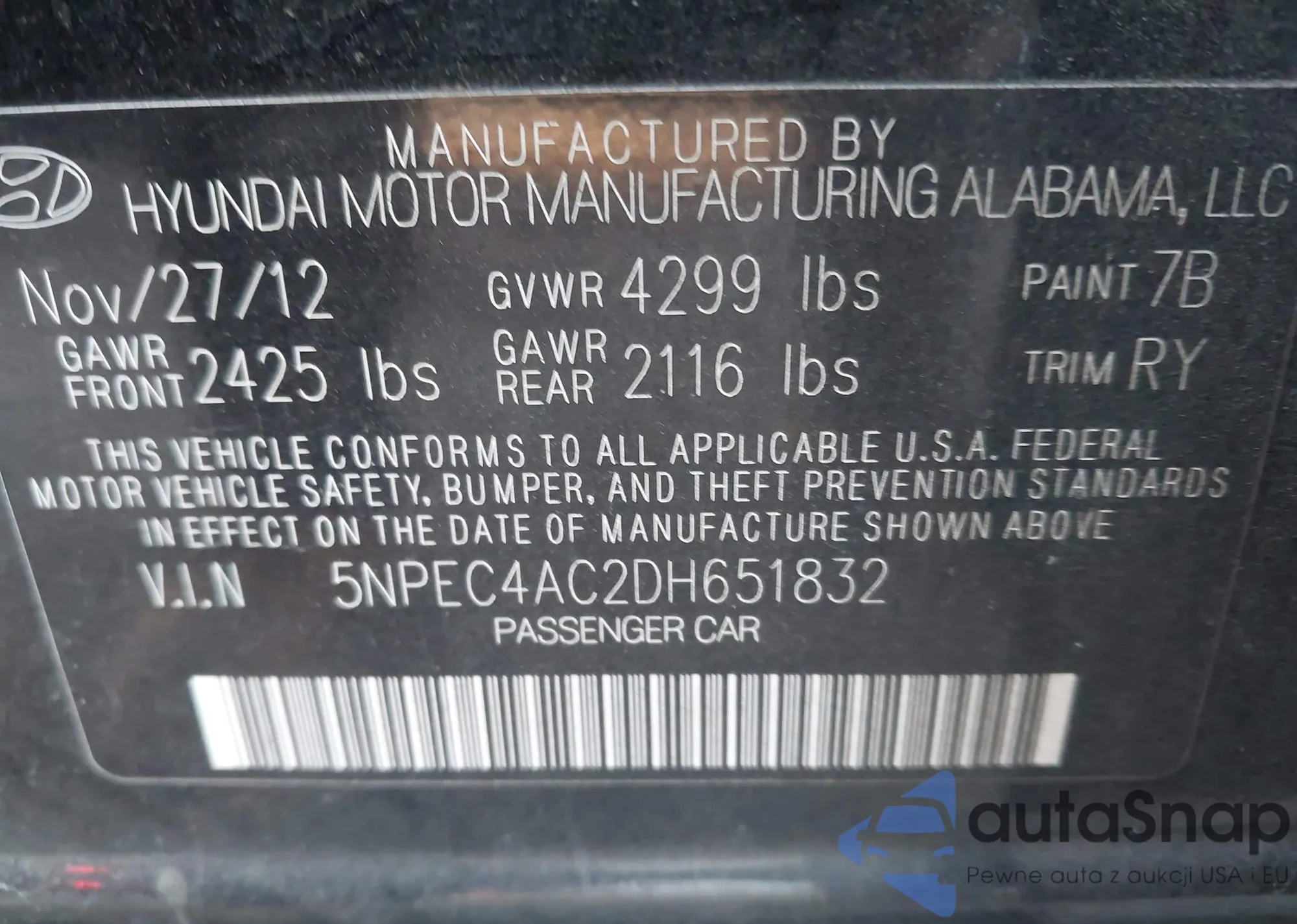 • VIN 5NPEB4ACXDH778301