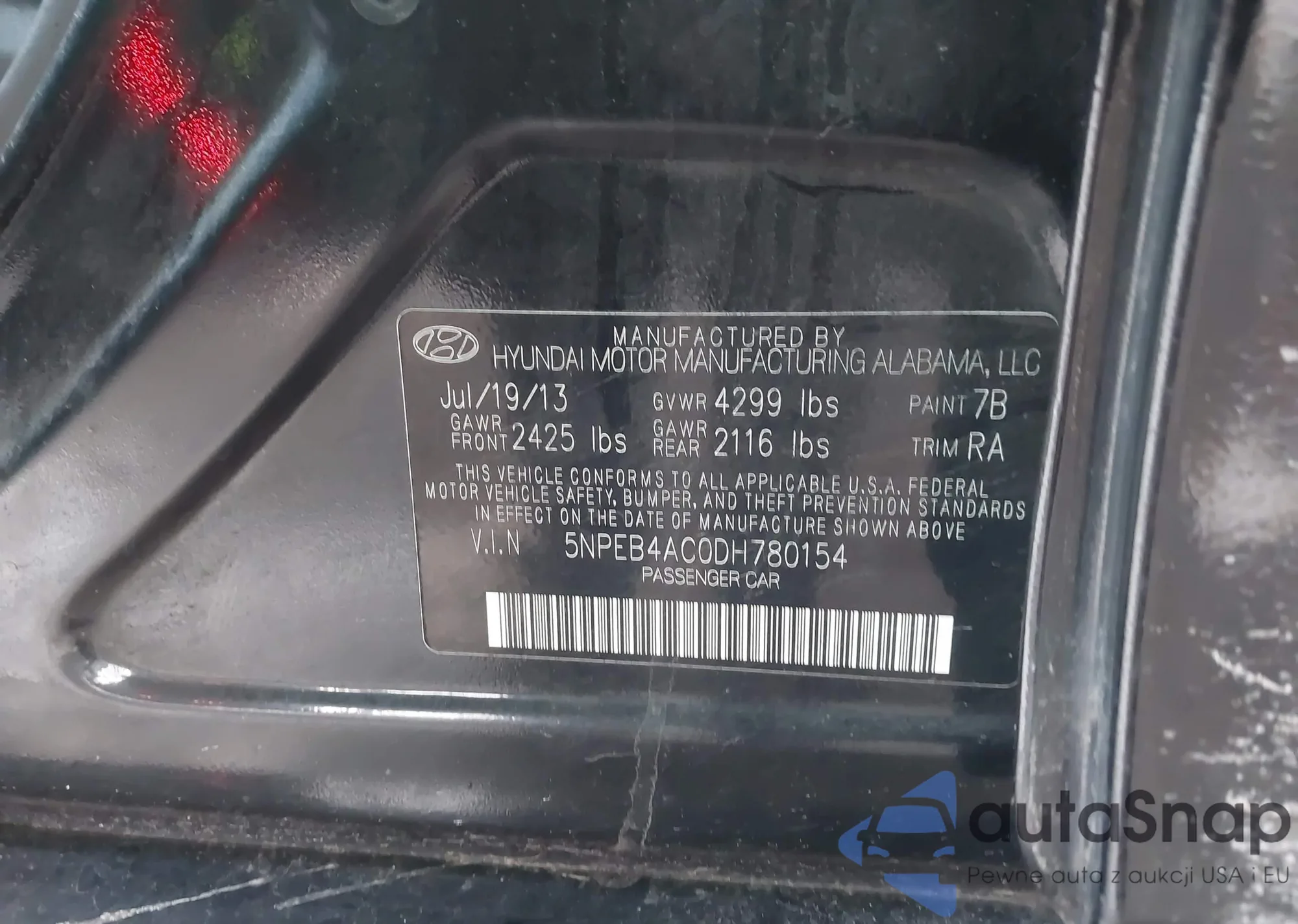 • VIN 5NPEB4AC0DH780154