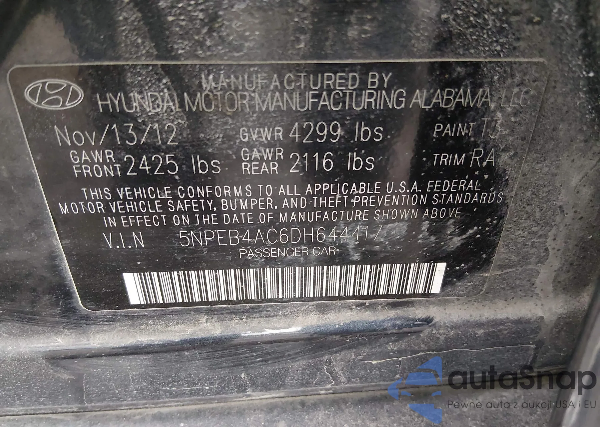 • VIN 5NPEB4AC6DH644417