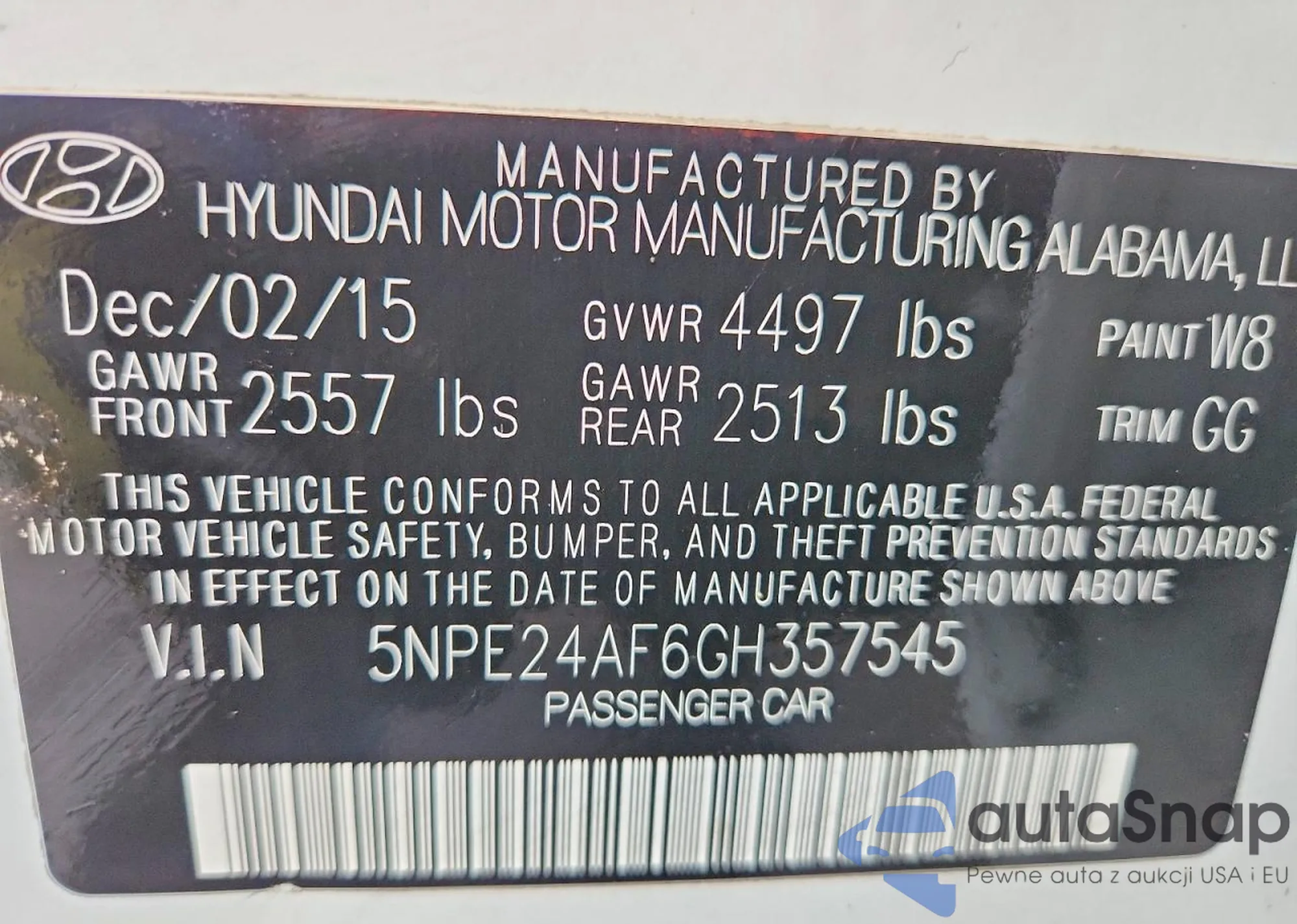 • VIN 5NPE24AF6GH357545