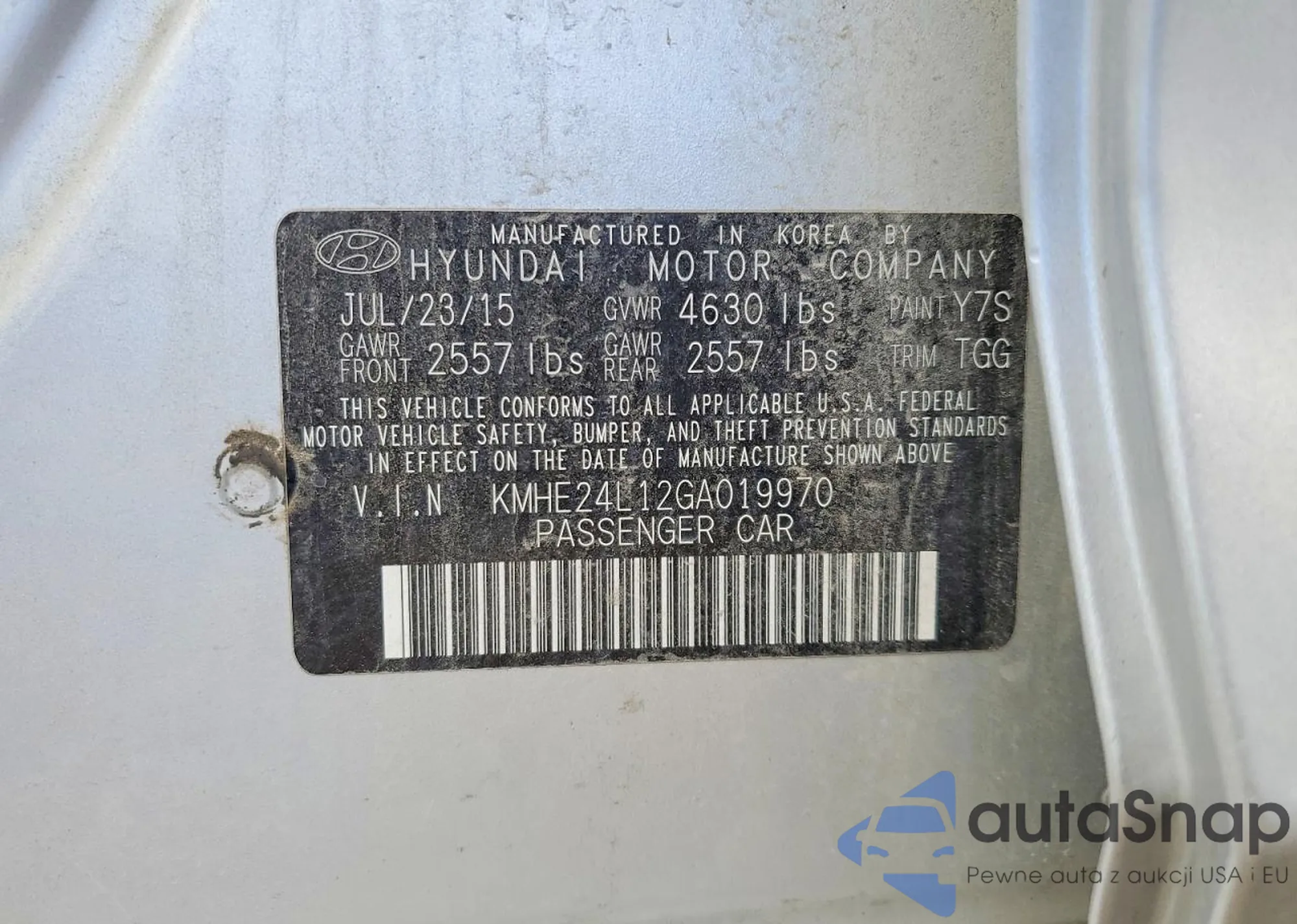 LOT: 79623285 VIN: KMHE24L12GA019970