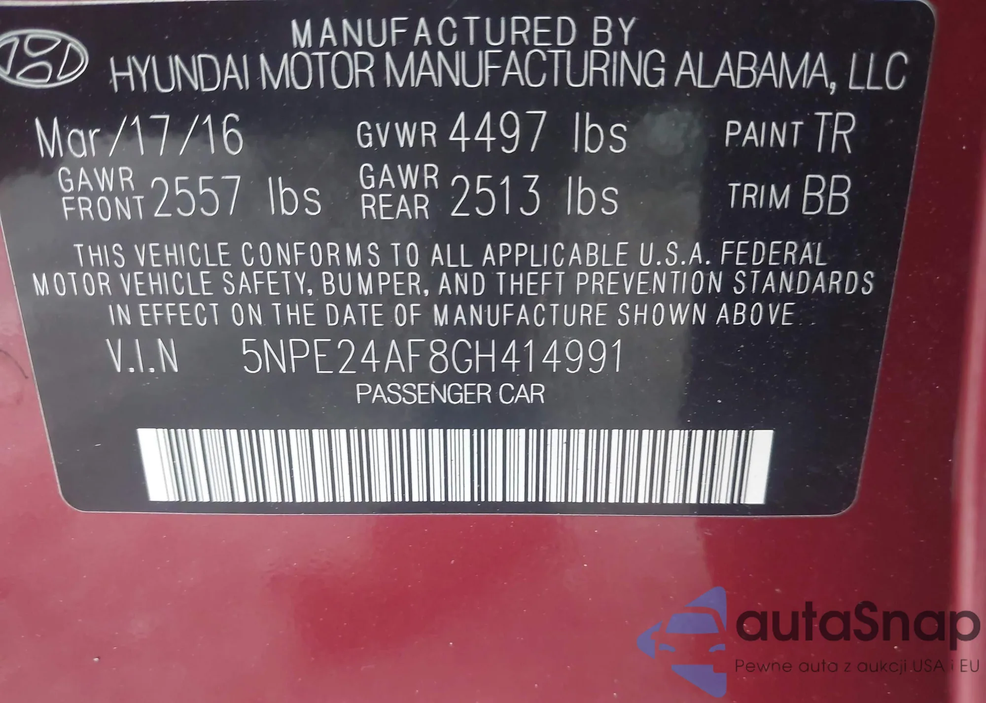 Kup Hyundai Sonata VII (LF) z USA