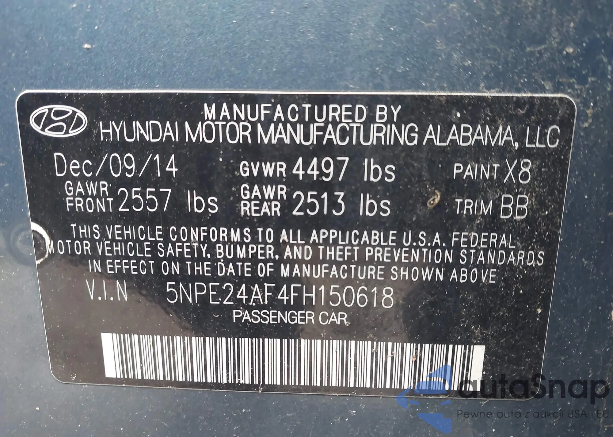 • VIN 5NPE24AF4FH150618