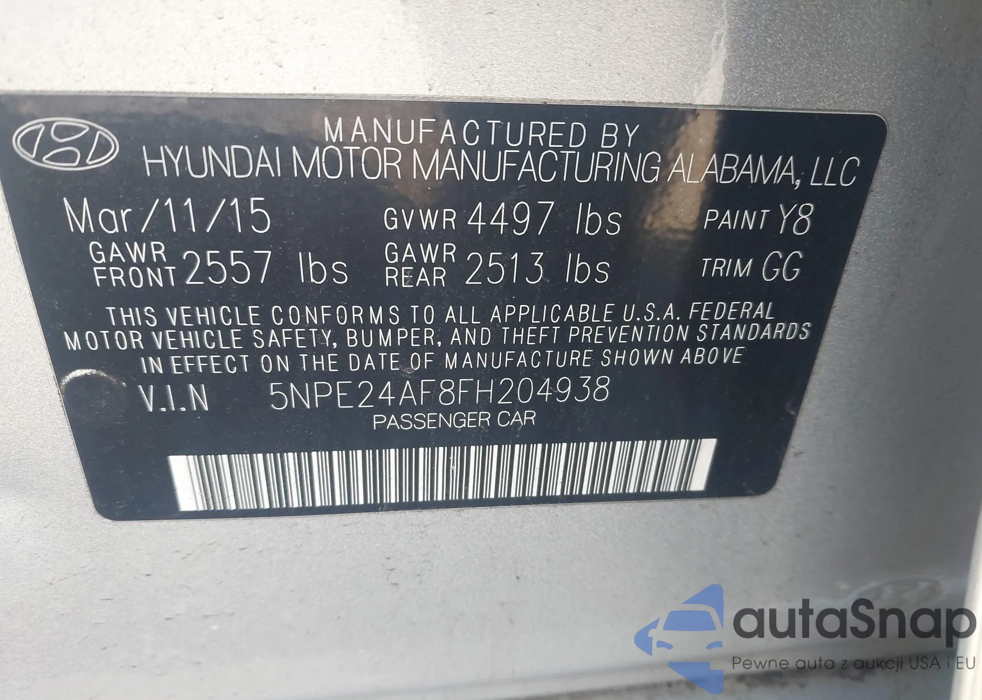 • VIN 5NPE24AF8FH204938