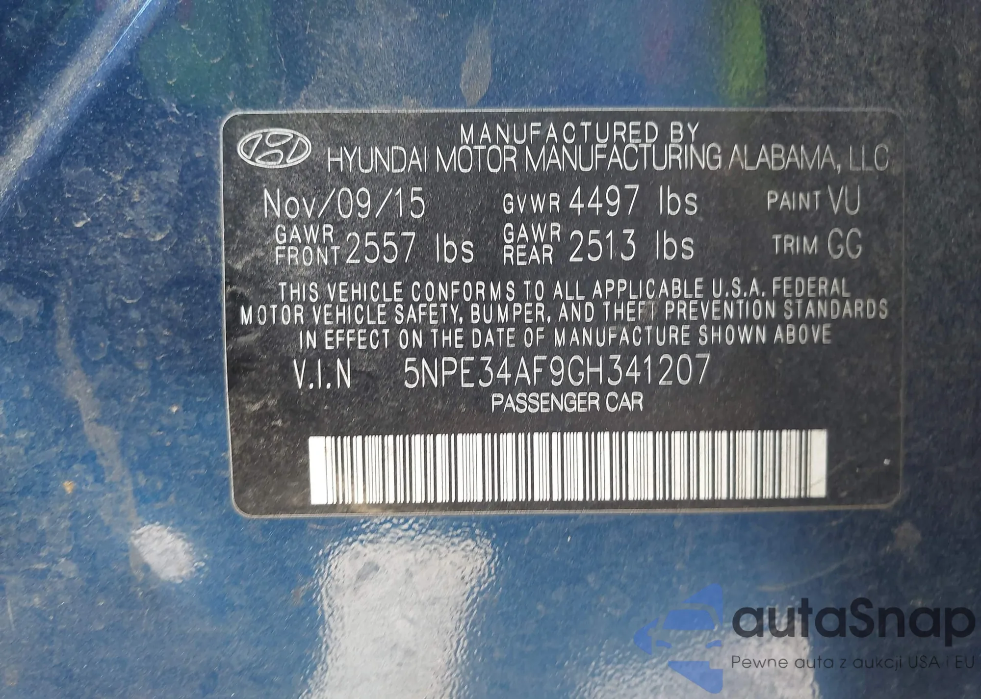 • VIN 5NPE34AF9GH341207