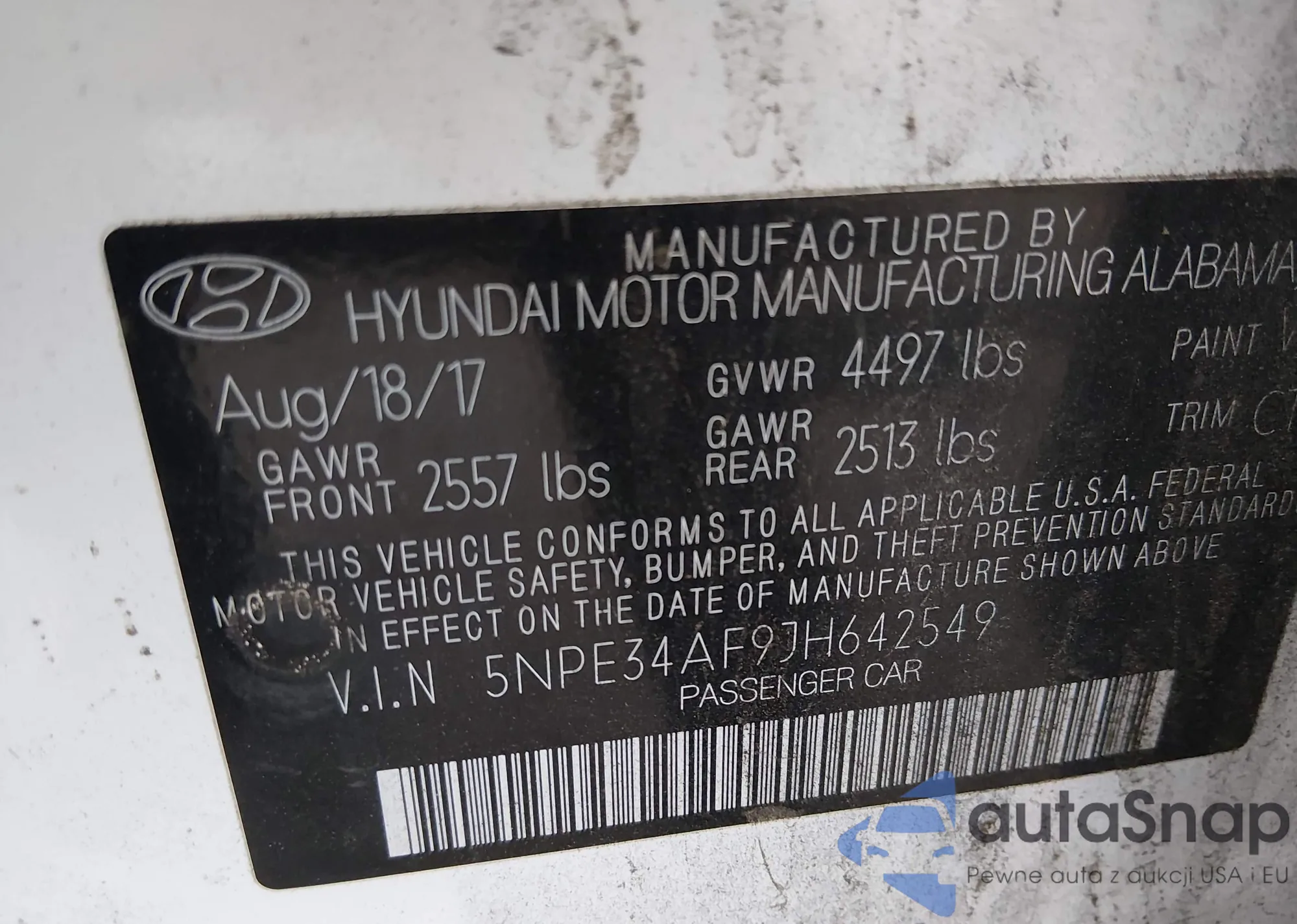 • VIN 5NPE34AF9JH642549
