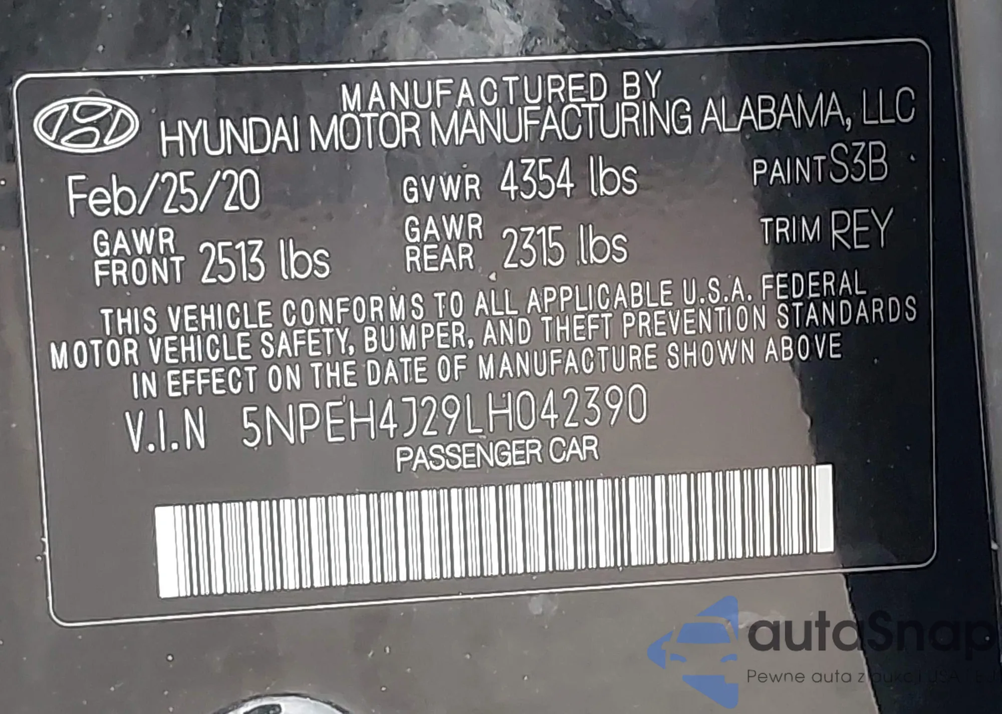 • VIN 5NPEH4J29LH042390