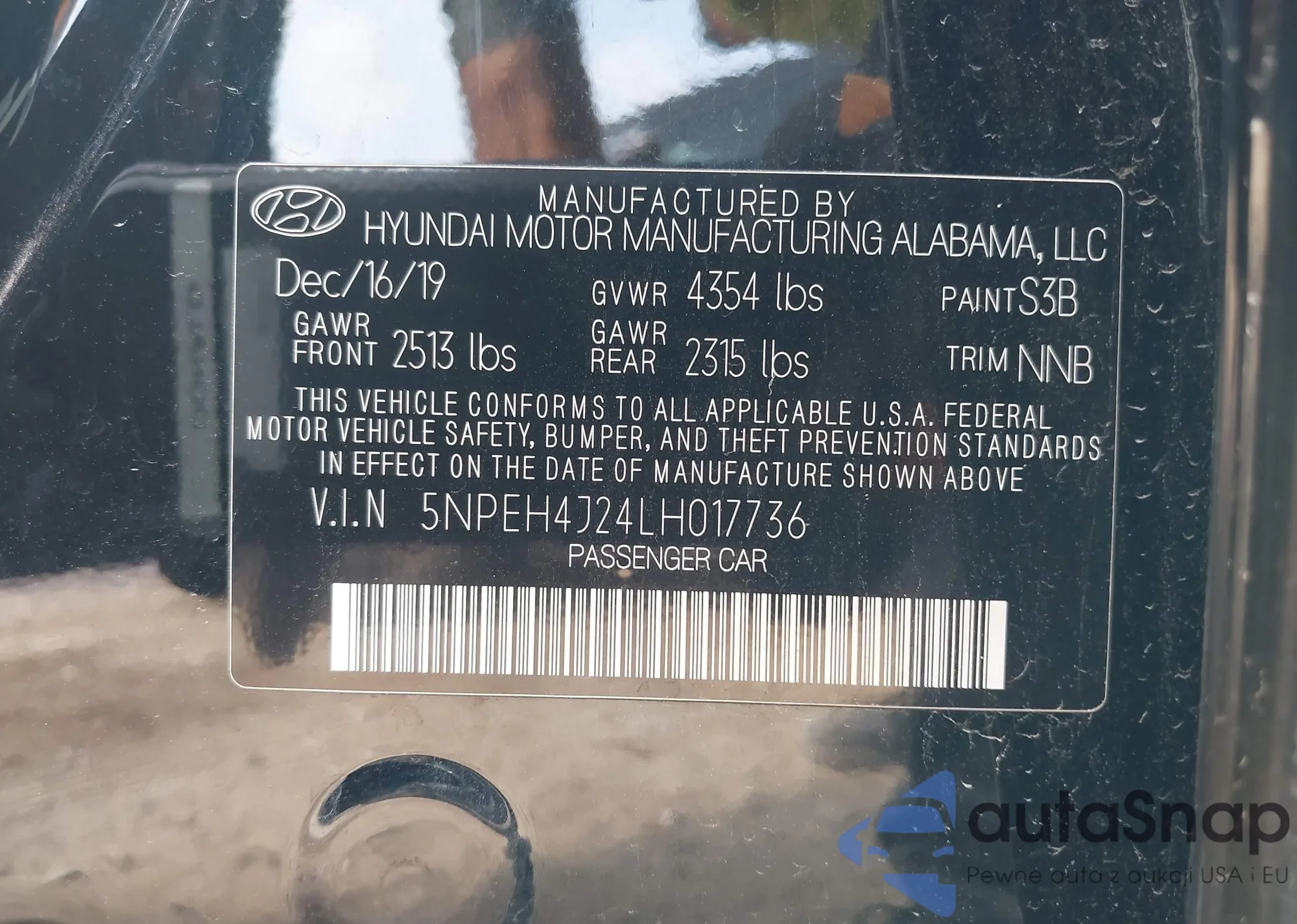 LOT: 44052939 VIN: 5NPEH4J24LH017736