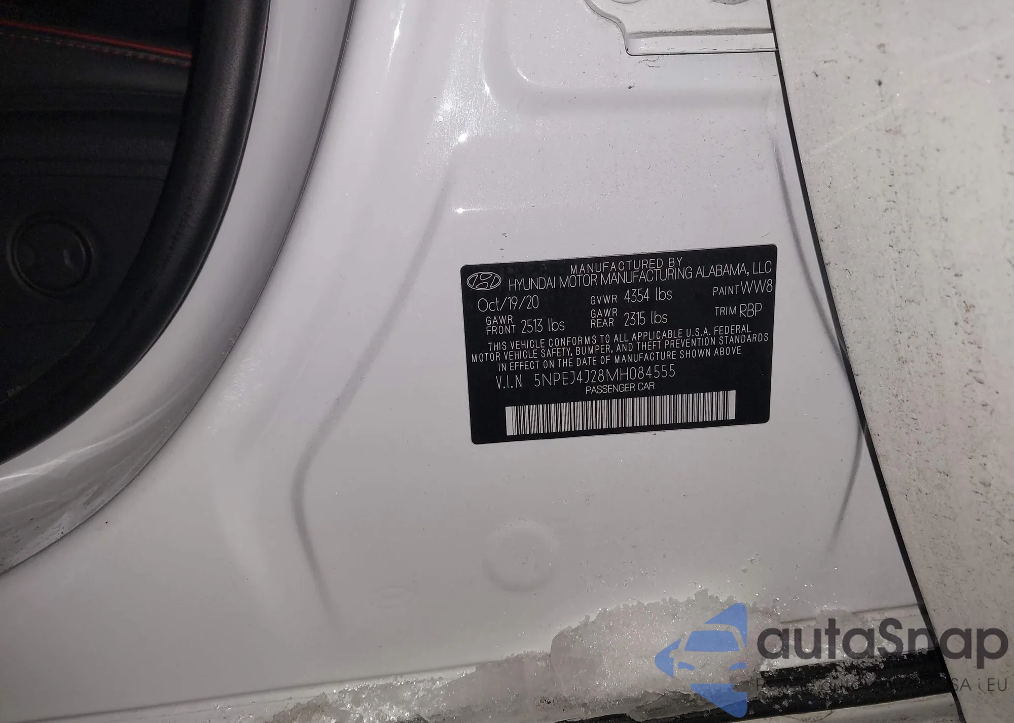 LOT: 44255207 VIN: 5NPEJ4J28MH084555