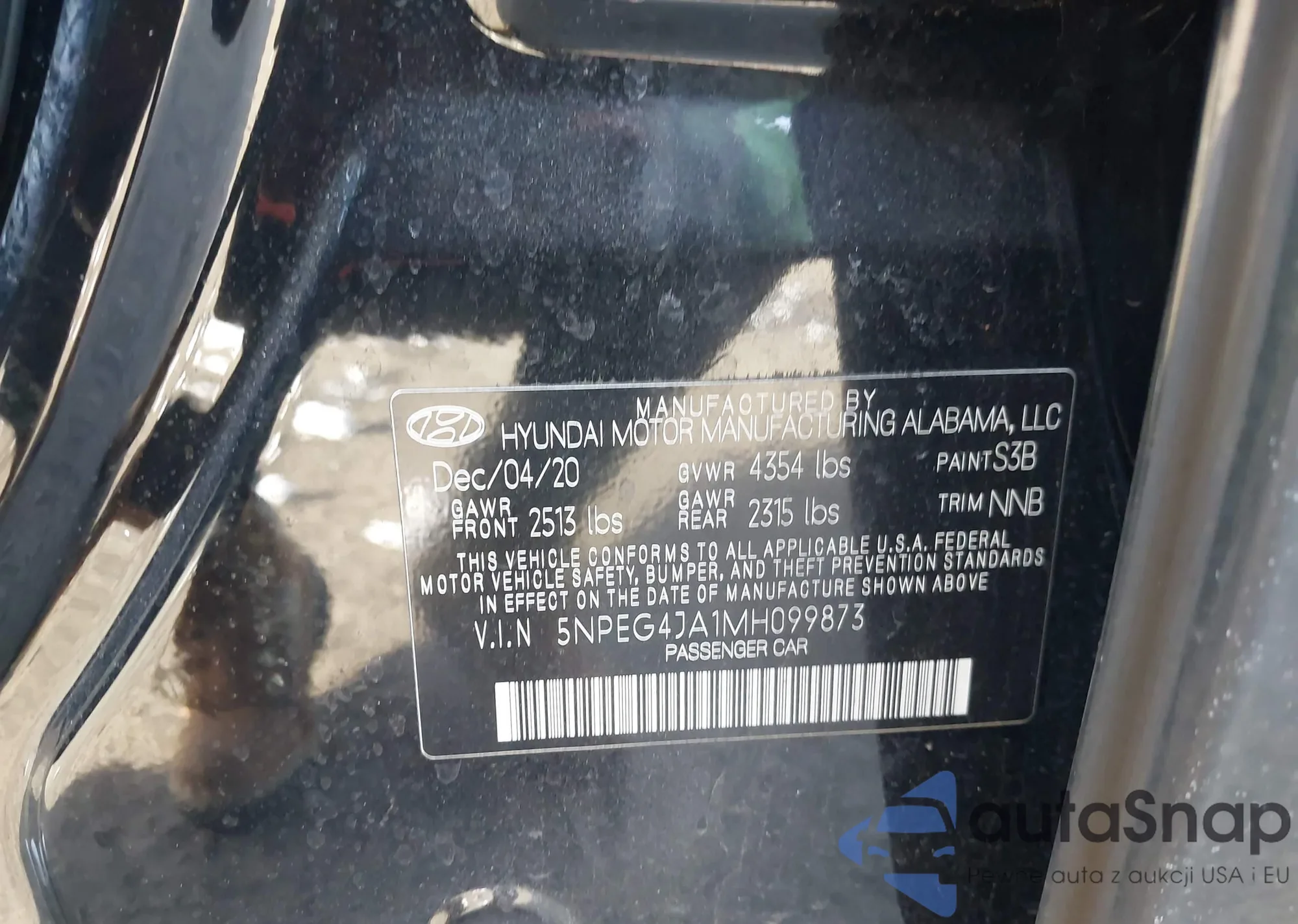 LOT: 44272732 VIN: 5NPEG4JA1MH099873