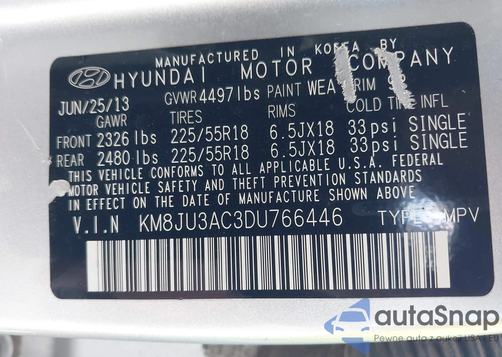 • VIN KM8JU3AC3DU766446