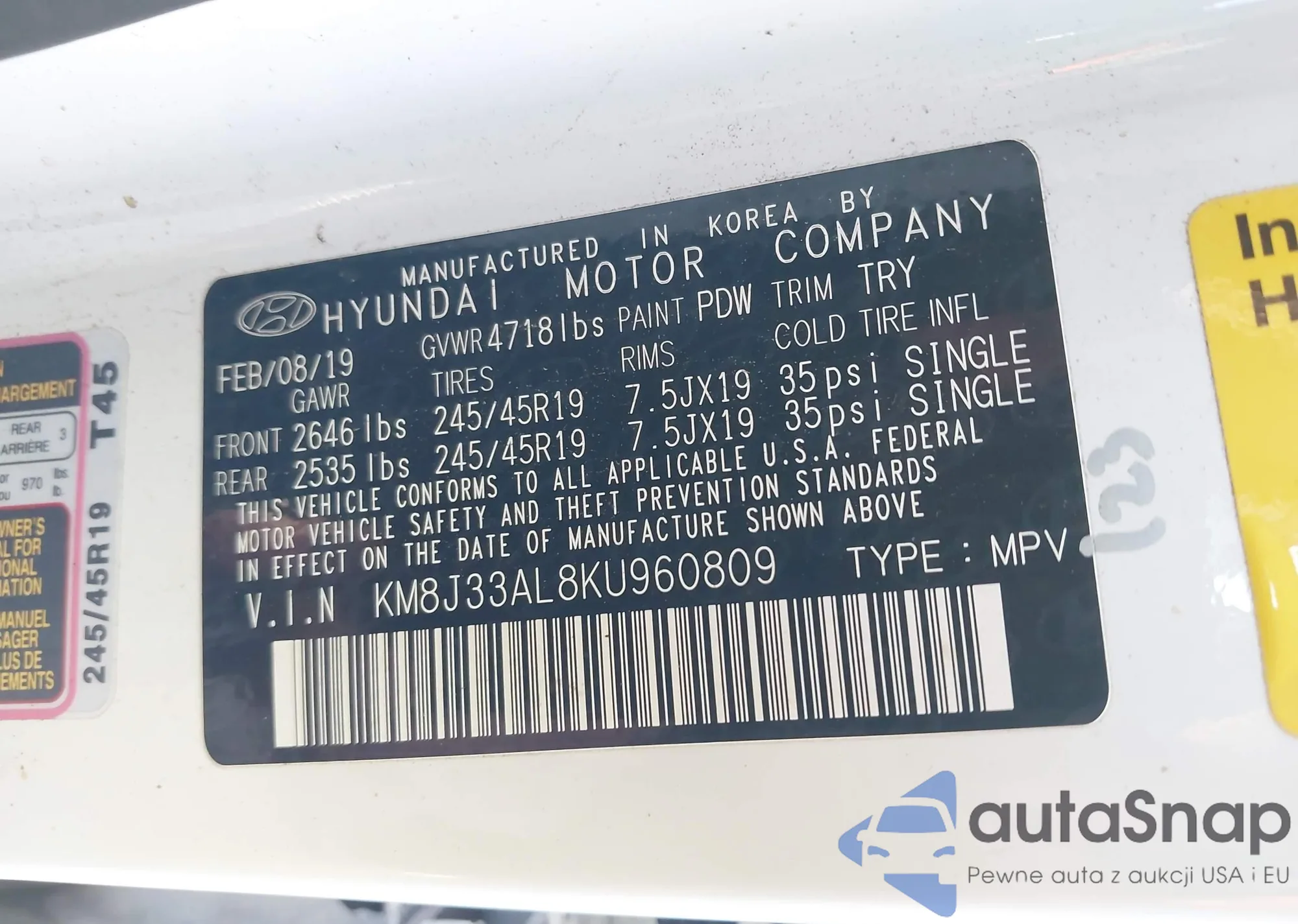 • VIN KM8J3CA49KU867743