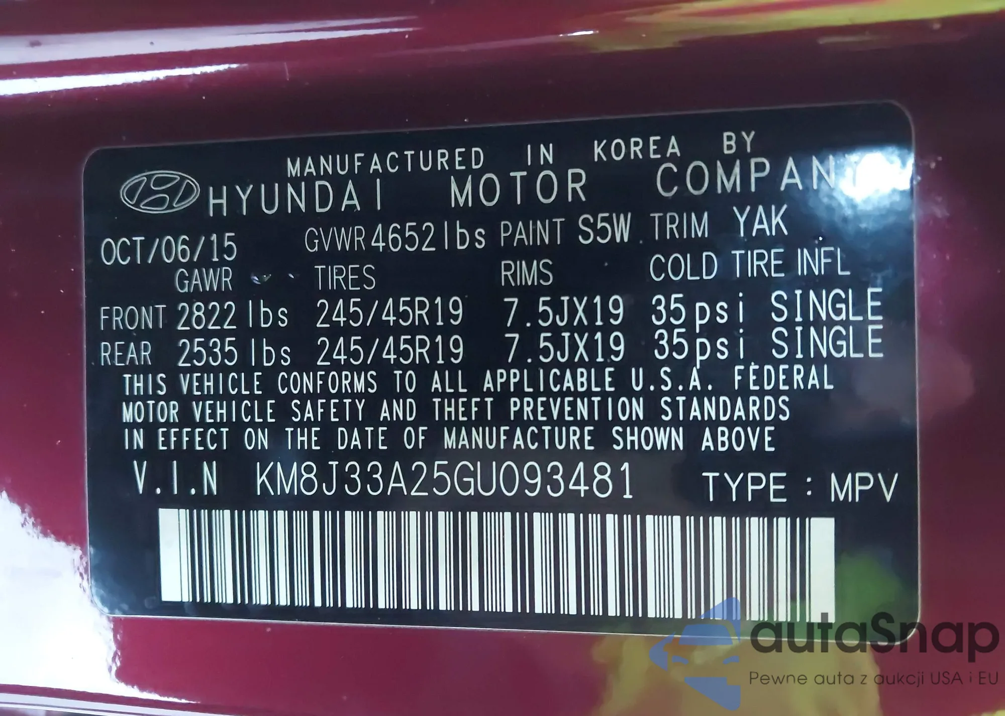 • VIN KM8J33A25GU093481