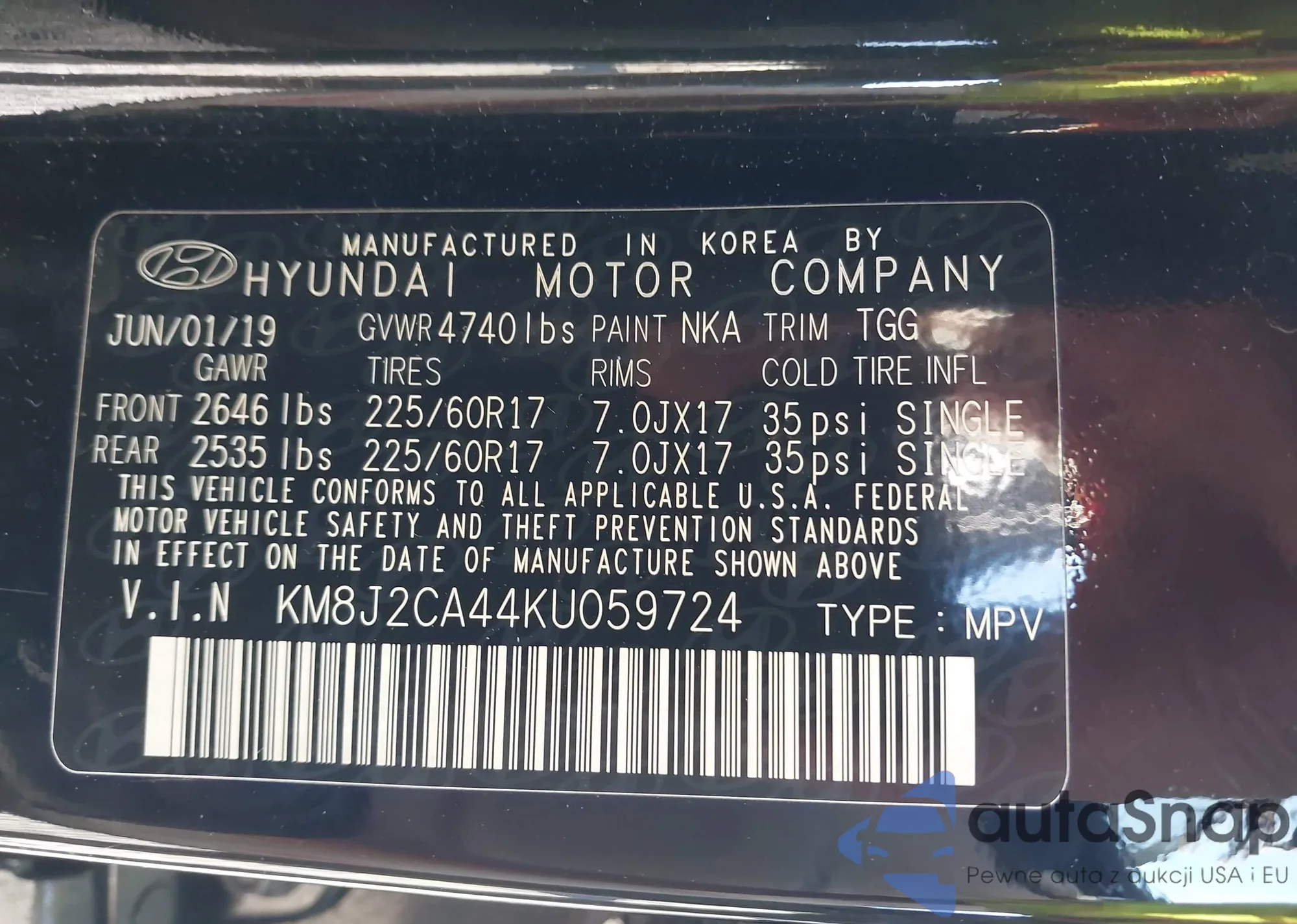 • VIN KM8J3CAL7JU824203