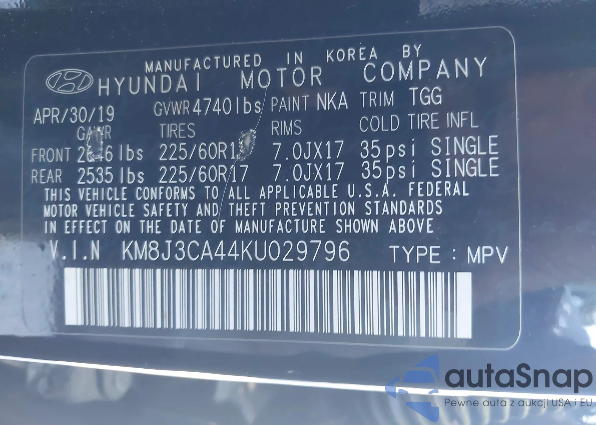 • VIN KM8J3CA44KU029796