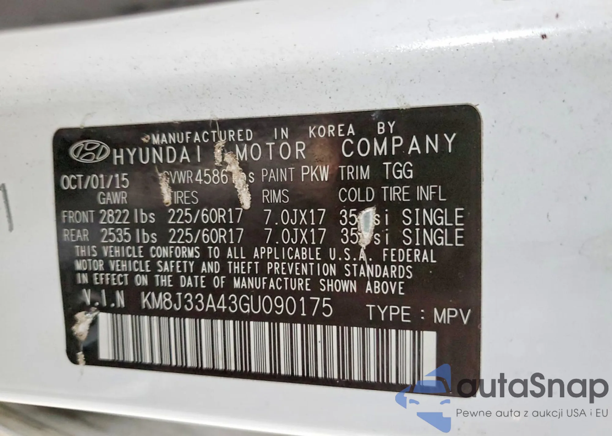 • VIN KM8J33A43GU090175