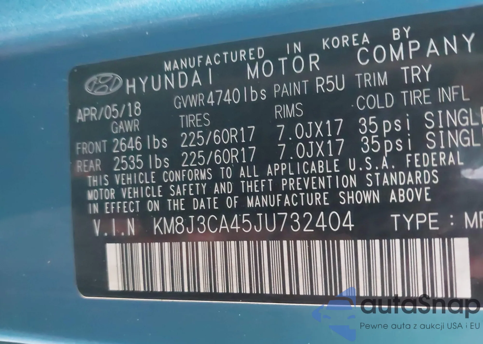 • VIN KM8J3CA45JU732404