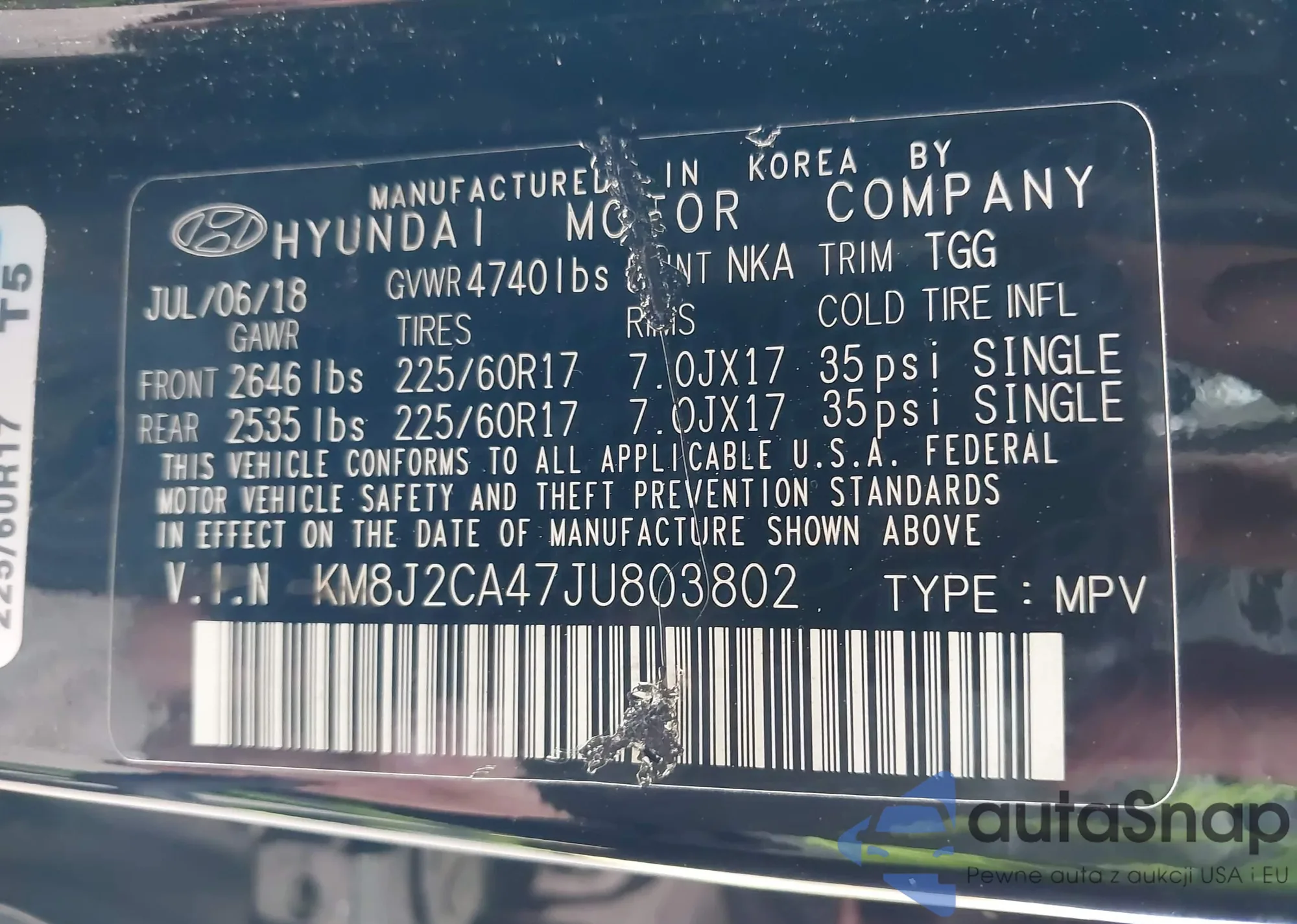 • VIN KM8J2CA47JU803802